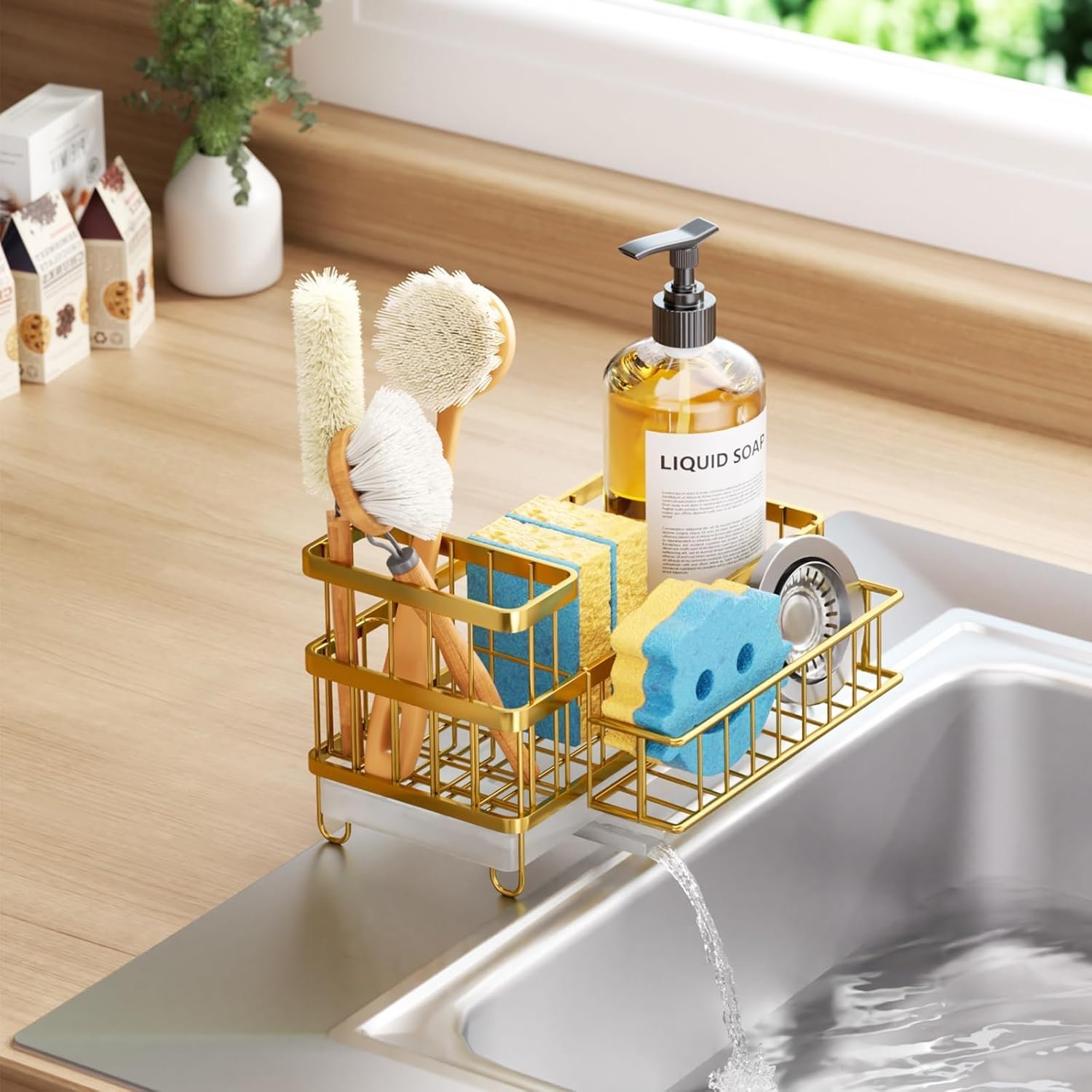 [Removable Storage Rack Design]: An enhanced detachable shelf design allows flexible use of storage space and easy cleaning. Rearrange or remove the compartments as needed to fit larger or irregular items. This kitchen soap holder adapts to your needs while adding practical elegance as a soap holder kitchen and organization and storage essential