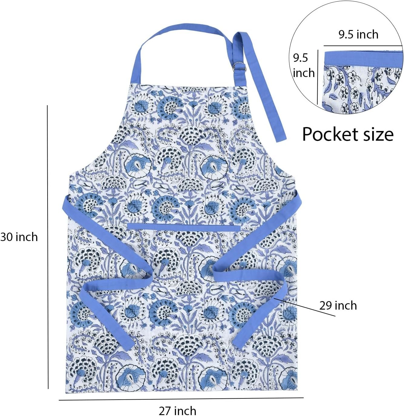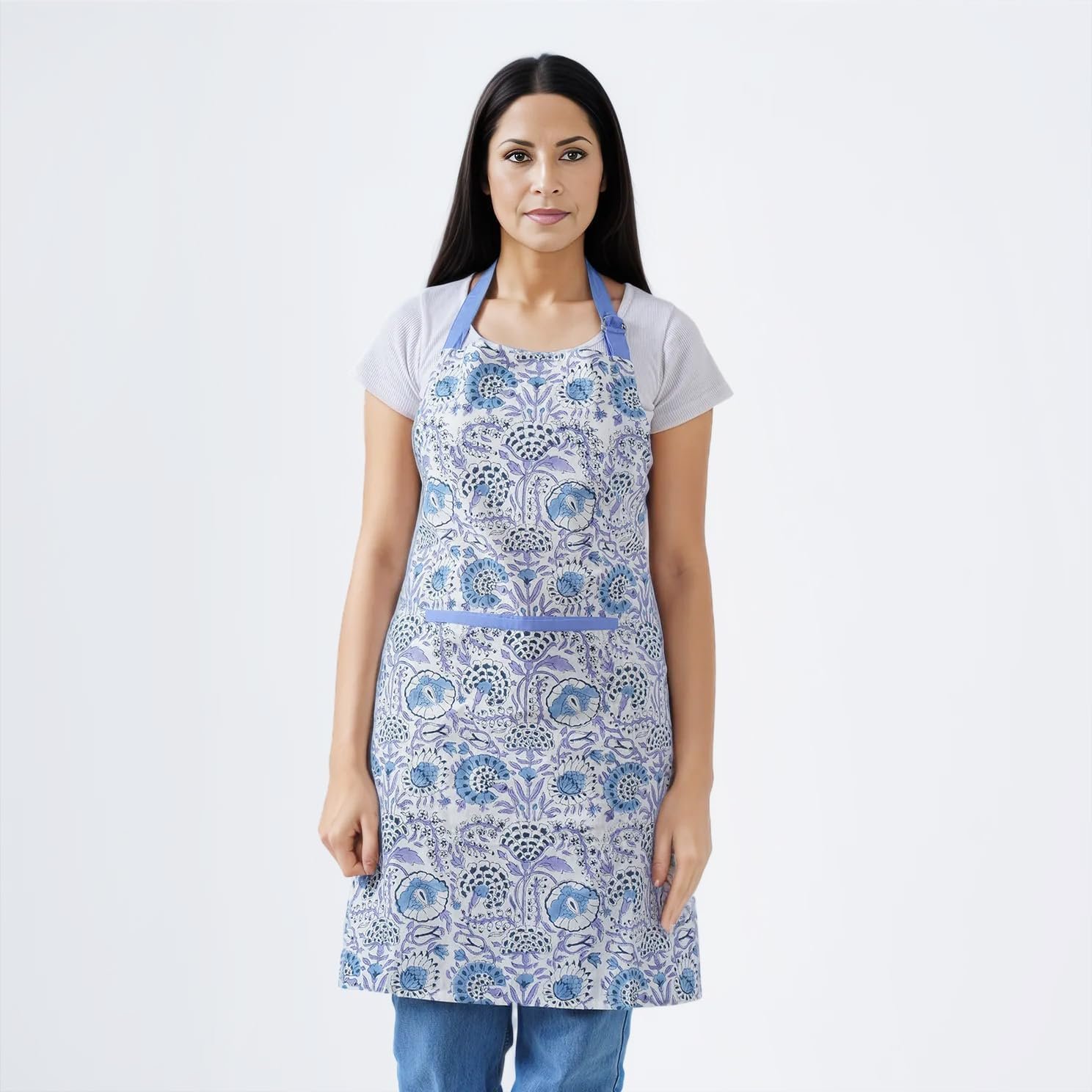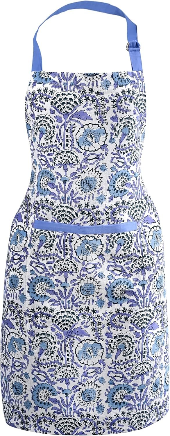 CPC Cotton Floral Kitchen Apron for women with Pocket and Adjustable Neck Ties. Apron for Women Men Chef-Hand Block Printed