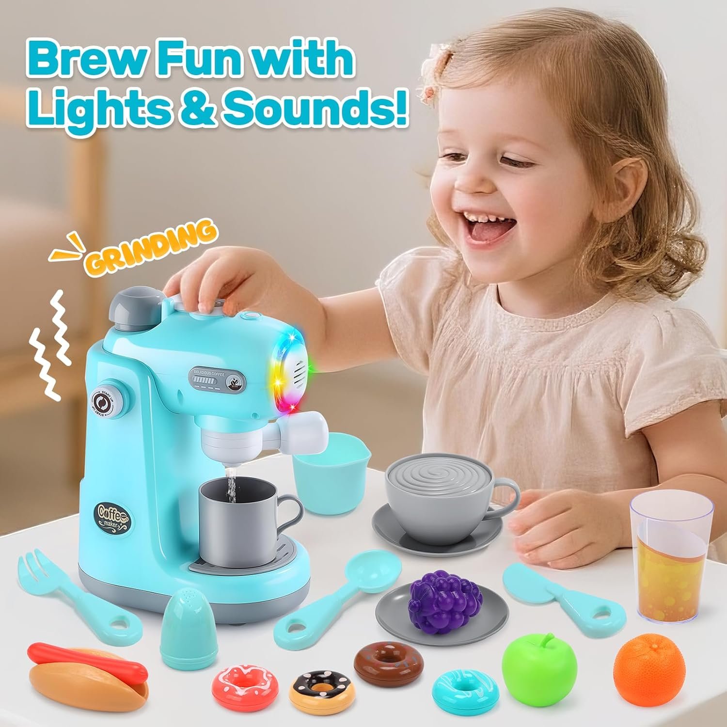 and watch it light up with real brewing sounds.