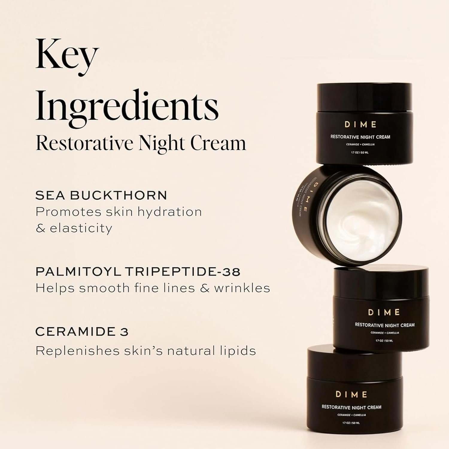NOURISHING INGREDIENTS: Packed with restorative ingredients like jojoba oil, squalane, shea butter, sea buckthorn, peptides, and ceramides, this overnight cream provides deep hydration and relief from irritation.