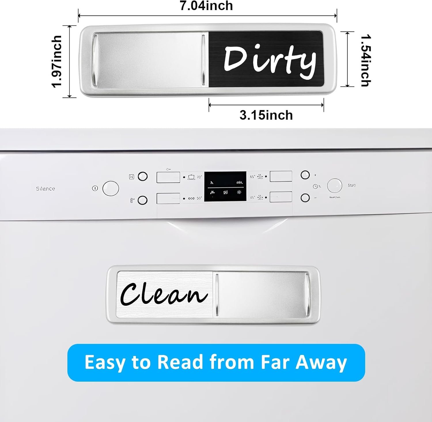 Universal Magnet Indicator: The clean dirty dishwasher magnet measures 7.04 x 1.97 inches and has clear, bold text that is easy to read. It comes with two extra double-sided self-adhesive stickers that can be attached to any non-magnetic dishwasher