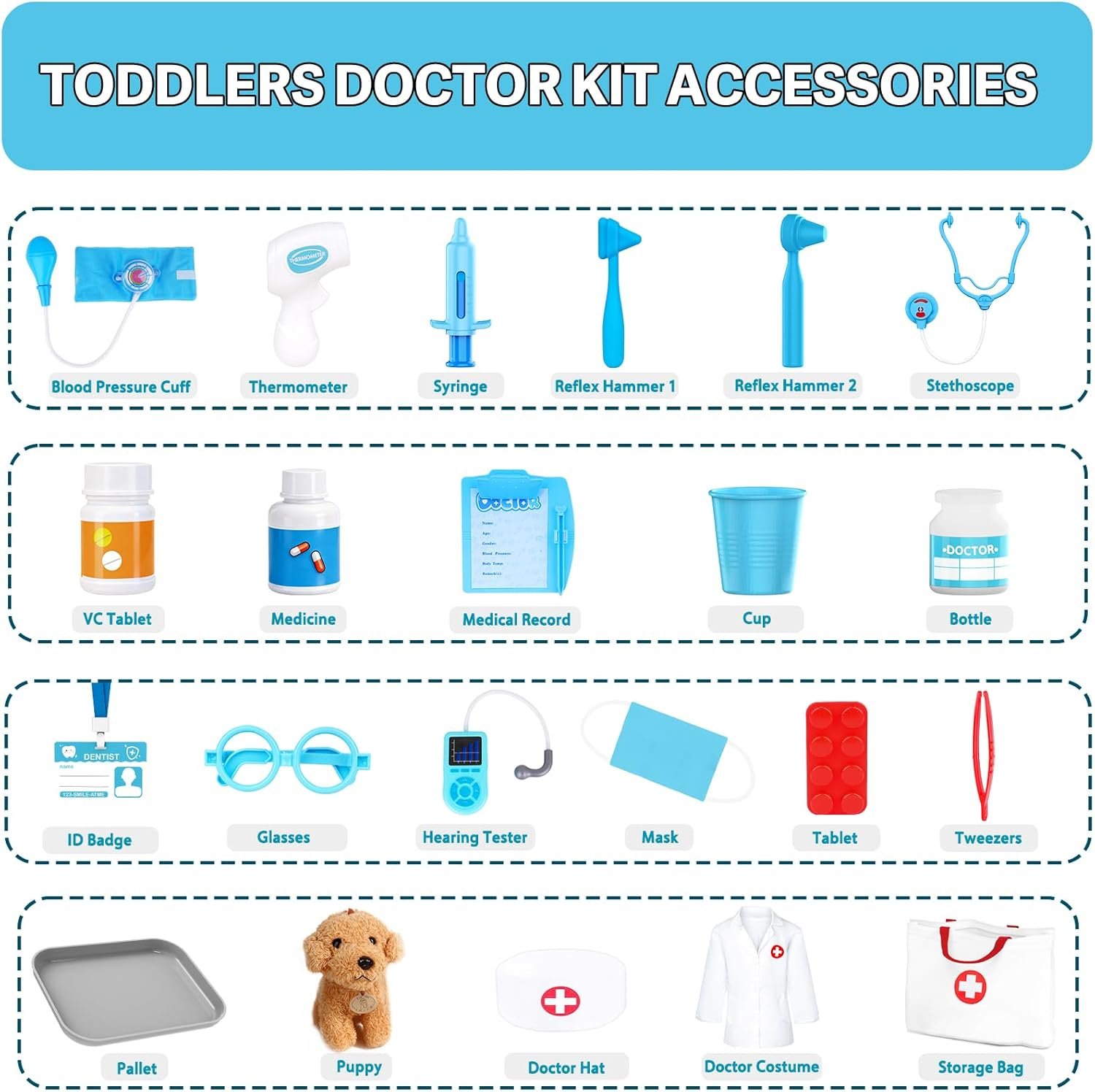Interactive Veterinarian Accessories: The doll dog acts as a perfect patient. Combined with a medicine bottle, medical record, and tray, it encourages nurturing care and expands storytelling possibilities for young children. This fully functional role-play veterinary set will spark imaginations and provide hours of creative play.