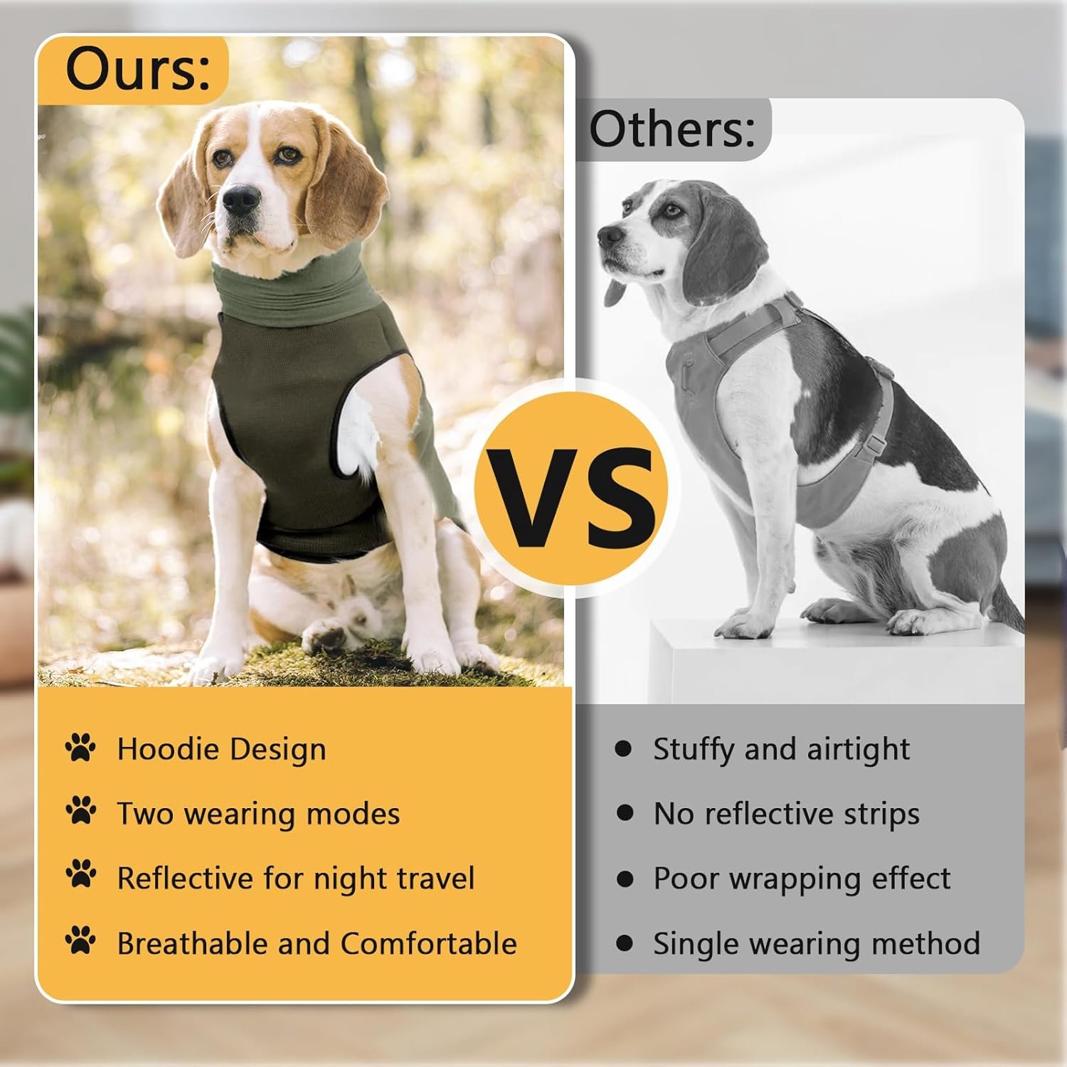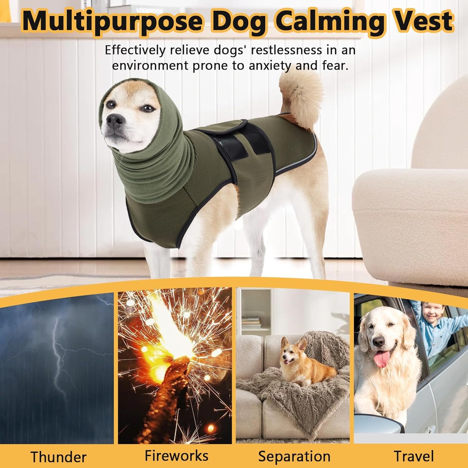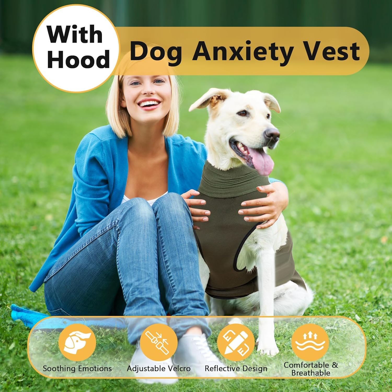Hoodie Design: Dog anxiety vest fully can wrap around the ears, dog ear for noise, calming down anxiety, fear and over-excitement triggered by various environmental factors, providing your dog with comprehensive relief and comfort, relieving anxiety and stress.