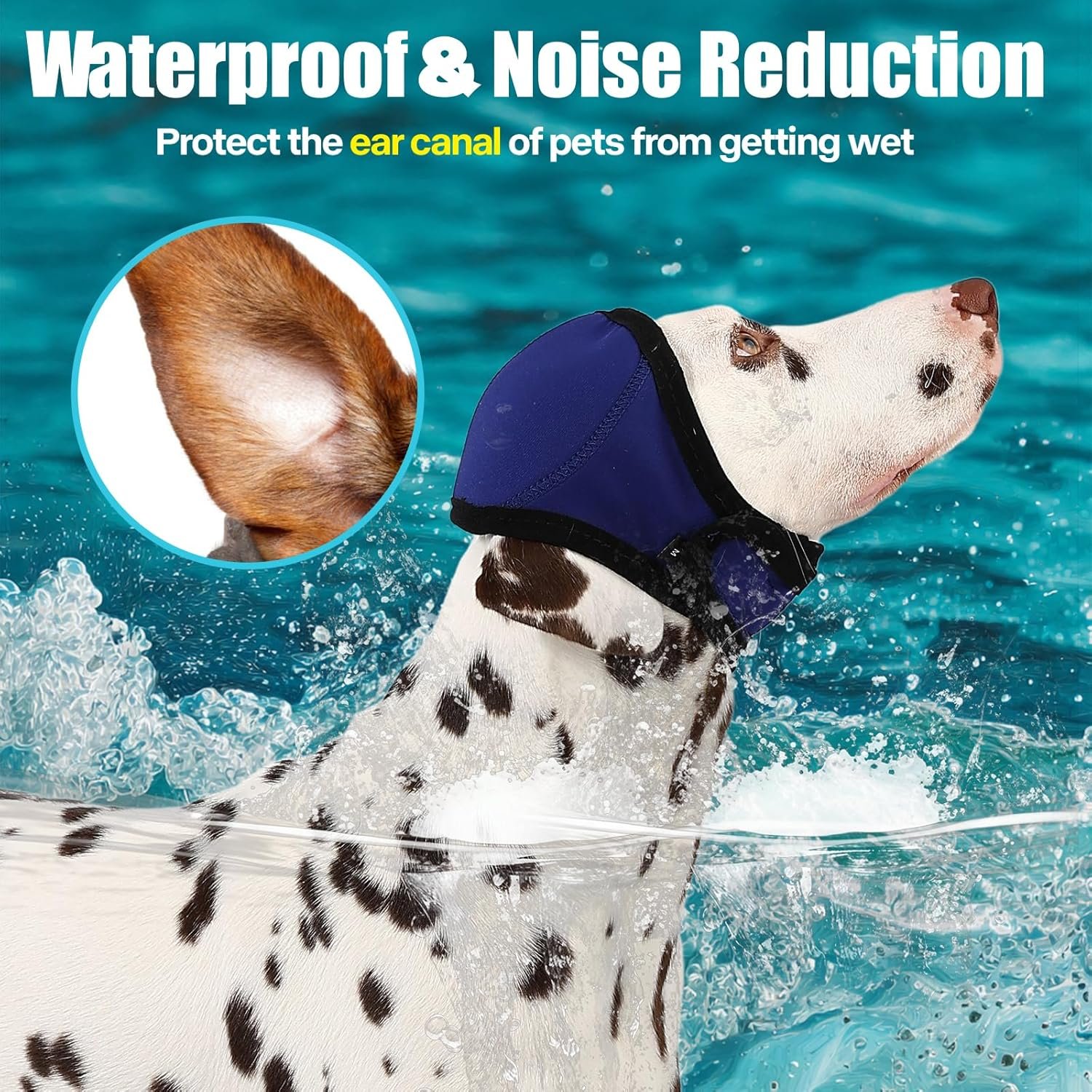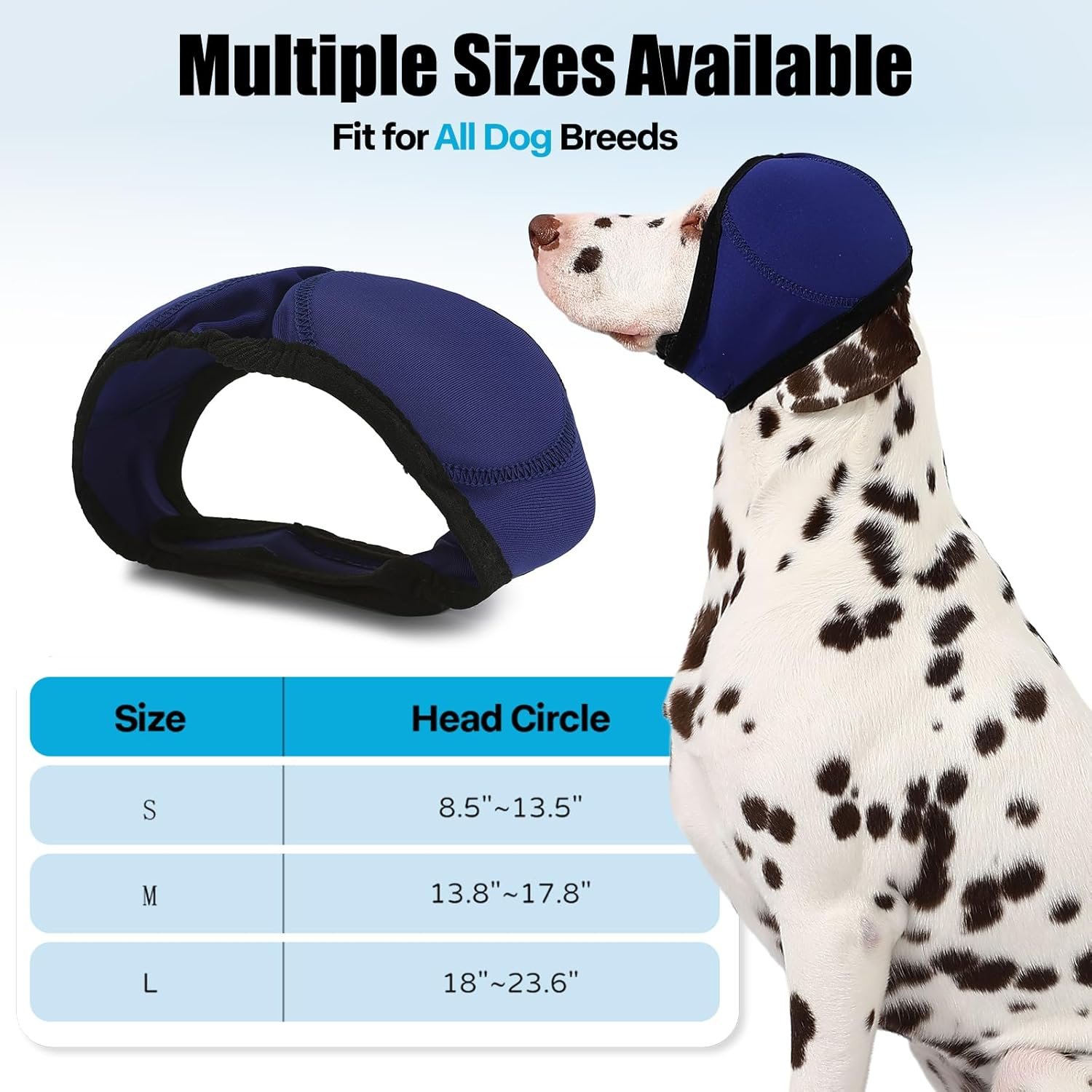 Features a stretchable Velcro headband for quick removal and a secure, comfortable fit for pets. Engineered with soundproof and waterproof materials—ideal for swimming and summer wear. Available in sizes from 8″ to 23.8″, suitable for most large dogs and cats. Please refer to the size chart and measure your pet’s head for the best fit.
