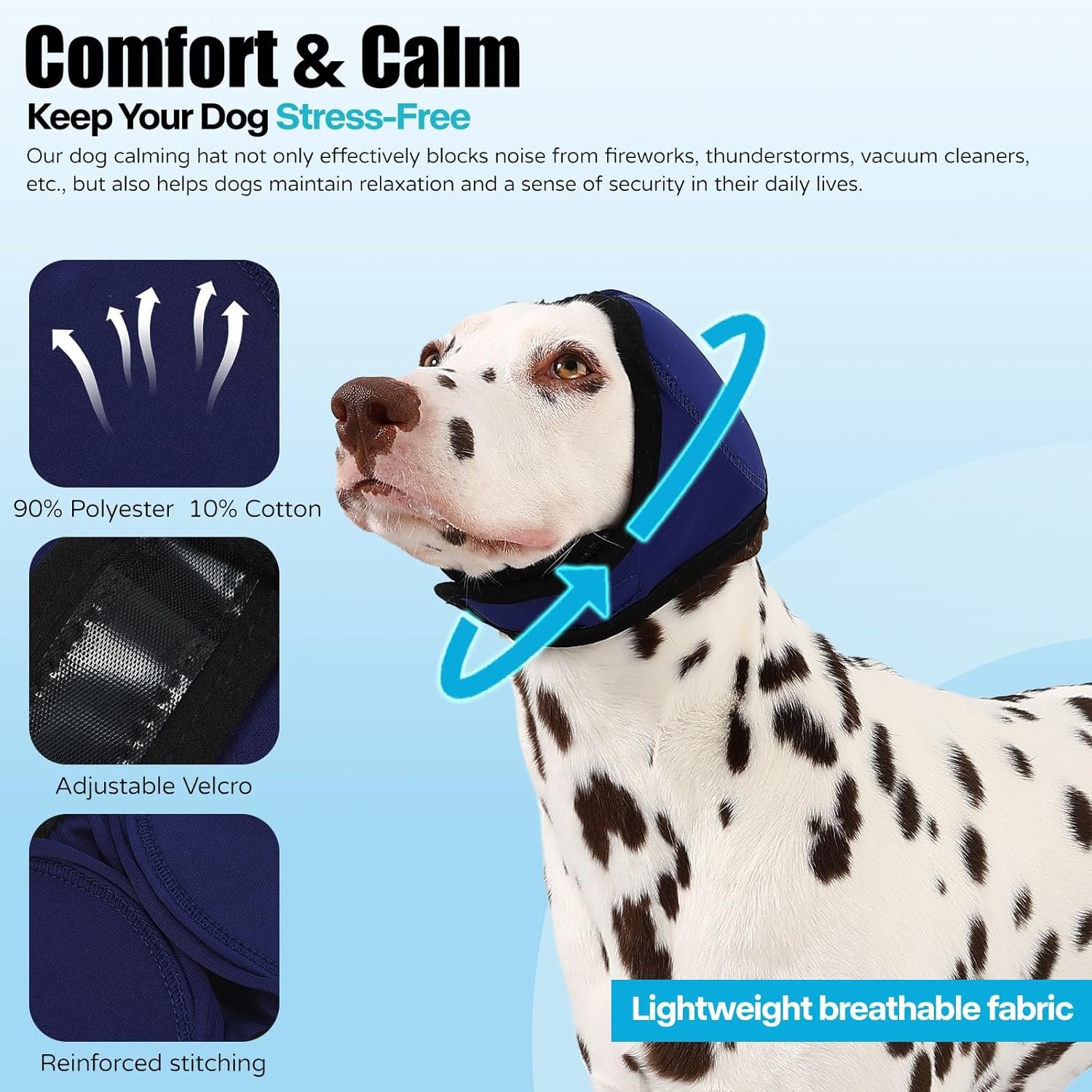 Ear Protection and Anxiety Relief: Our upgraded Velcro Dog Headband effectively reduces noise levels, protecting your dog’s sensitive ears from loud noises, such as fireworks, thunderstorms, or construction sites. It also helps alleviate anxiety and stress in dogs during these noisy situations.