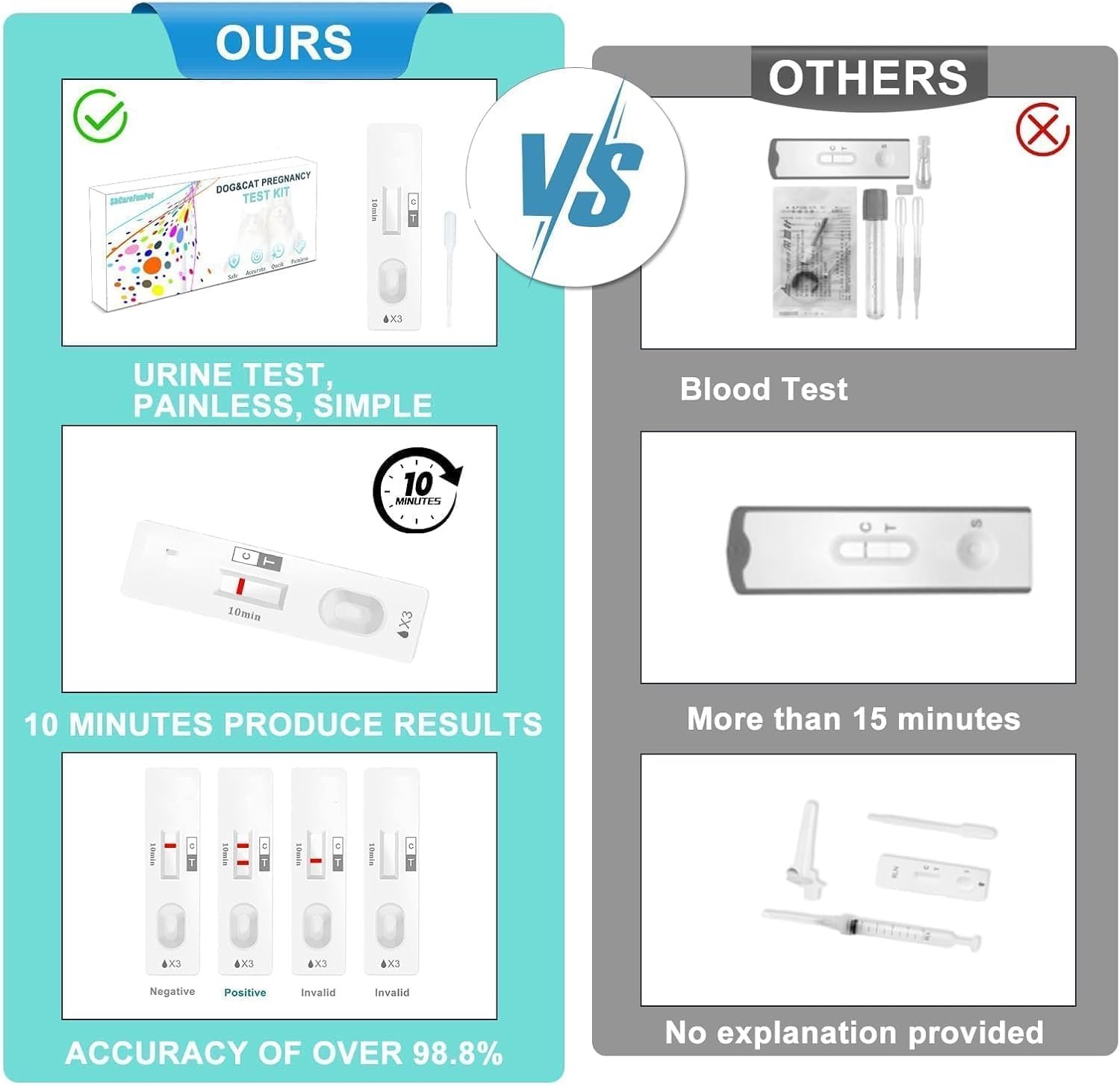 Early High Accuracy:Serves as a dog and cat pregnancy test, detects pregnancy via urine as early as 25-28 days post-mating, 98.8% accurate—faster than traditional 30+ day veterinary screenings.