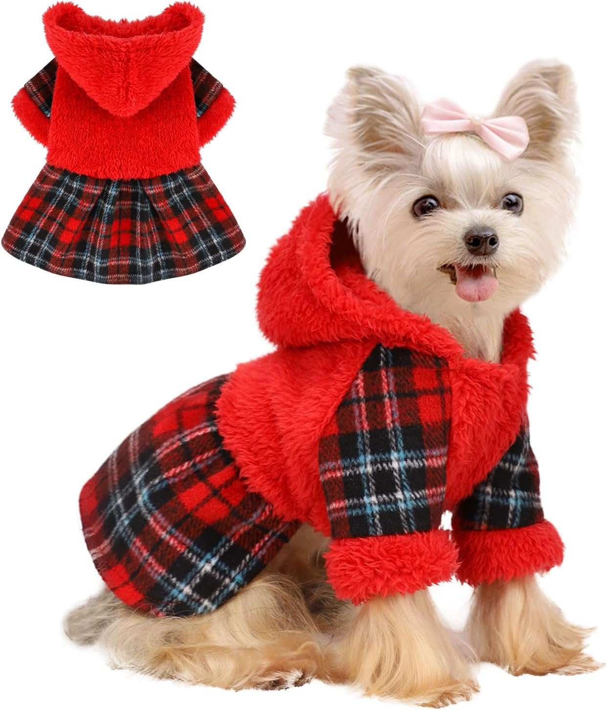 【Fashionable Cute Dress Designs】This dress for dog thick jacket is made of chic gingham patchwork, cute and eye-catching. It is a perfect dog clothes, small dog dress up your dog like a beautiful princess, make your pet look more cute and elegant. Always ready for any occasions, walk, travel, daily wear, themed party, birthday, wedding, Christmas and so on, it will be the center of attention.