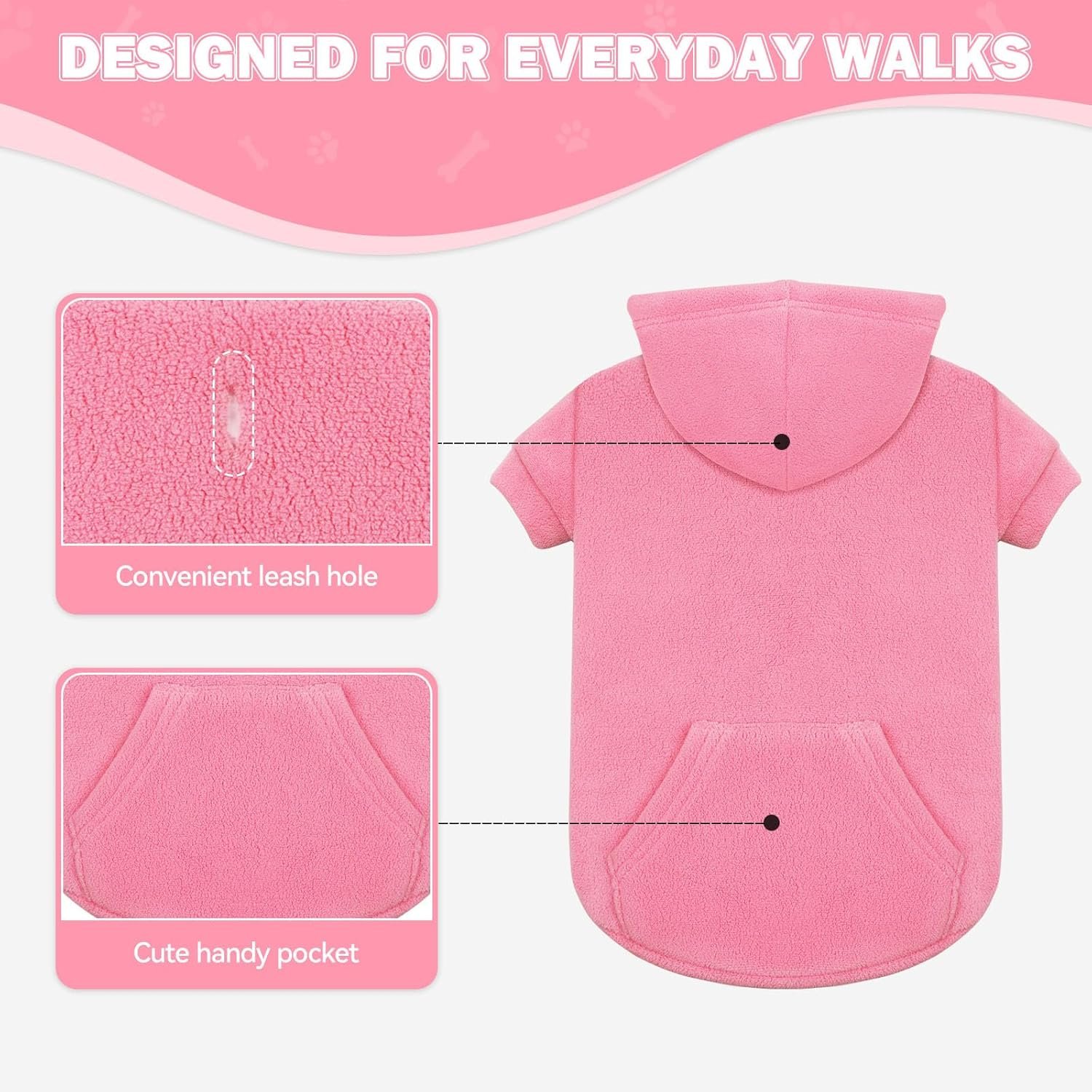 ★ Leash Hole for Easy Walks:Features a reinforced leash hole on the back—perfect for harnesses. (It’s a leash hole, not a tear!) Enjoy hassle-free walks without removing your dog’s hoodie.