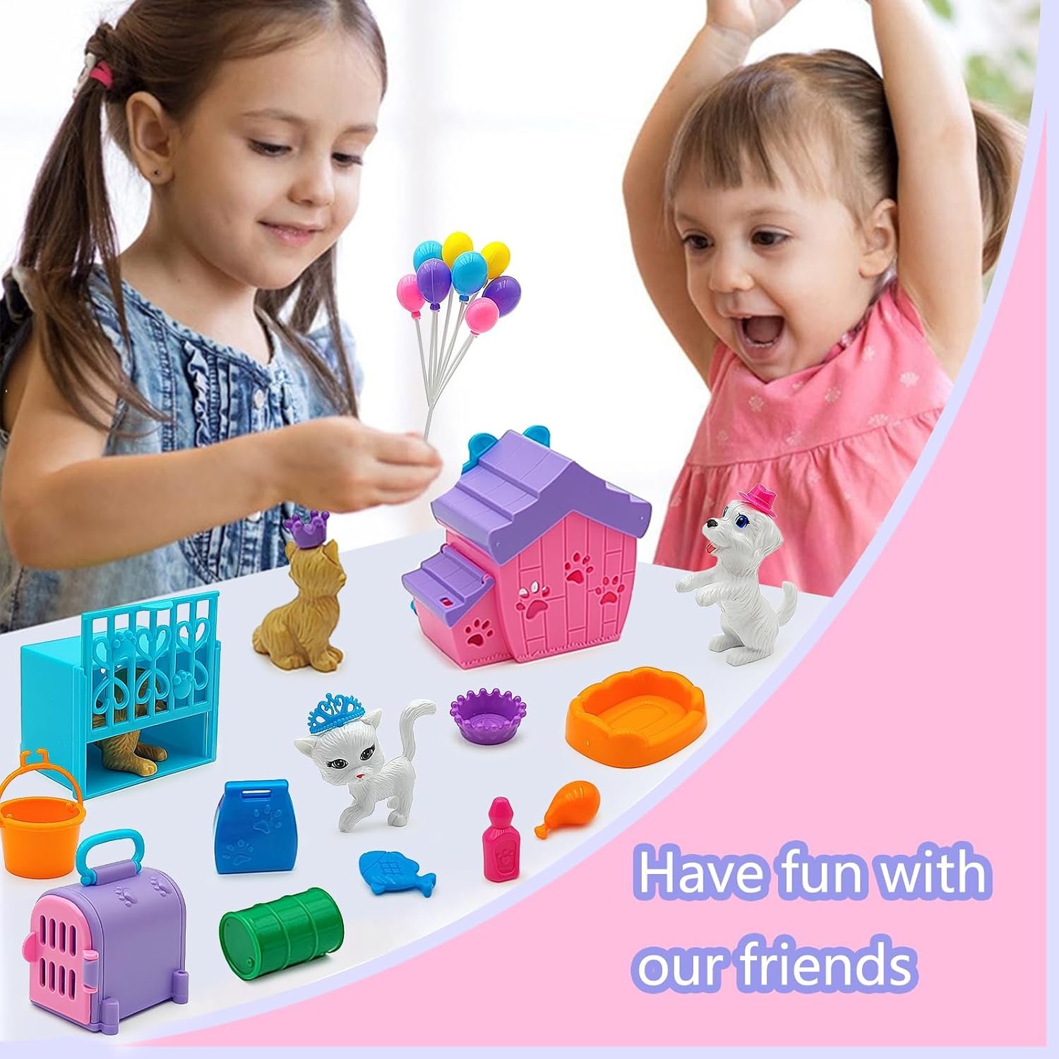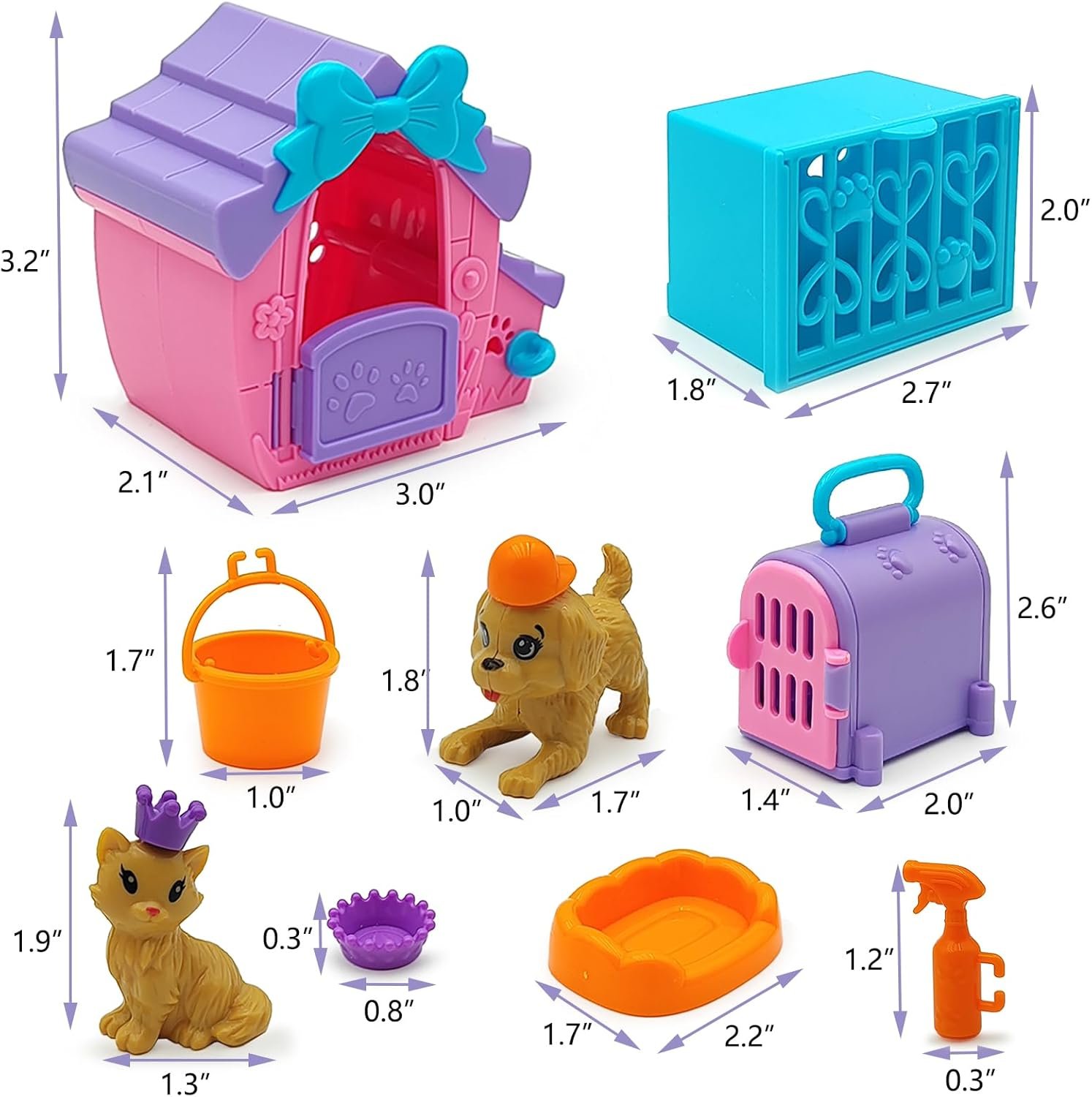 This pet playset can be played alone or with 6-14 inch dolls.Perfect for little kids and preschoolers.Charming gift ideas that perfect as a Christmas , Birthday , valentines day ,New Year , party favor and other holiday.