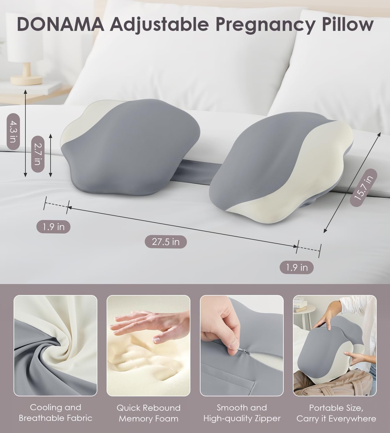 DONAMA Memory Foam Pregnancy Pillow- with Adjustable Air Bag for Back/Legs/Belly/HIPS Support, W-Shaped Pregnancy Wedge Pillows for Sleeping, Cooling Maternity Body Pillow for Pregnant Women