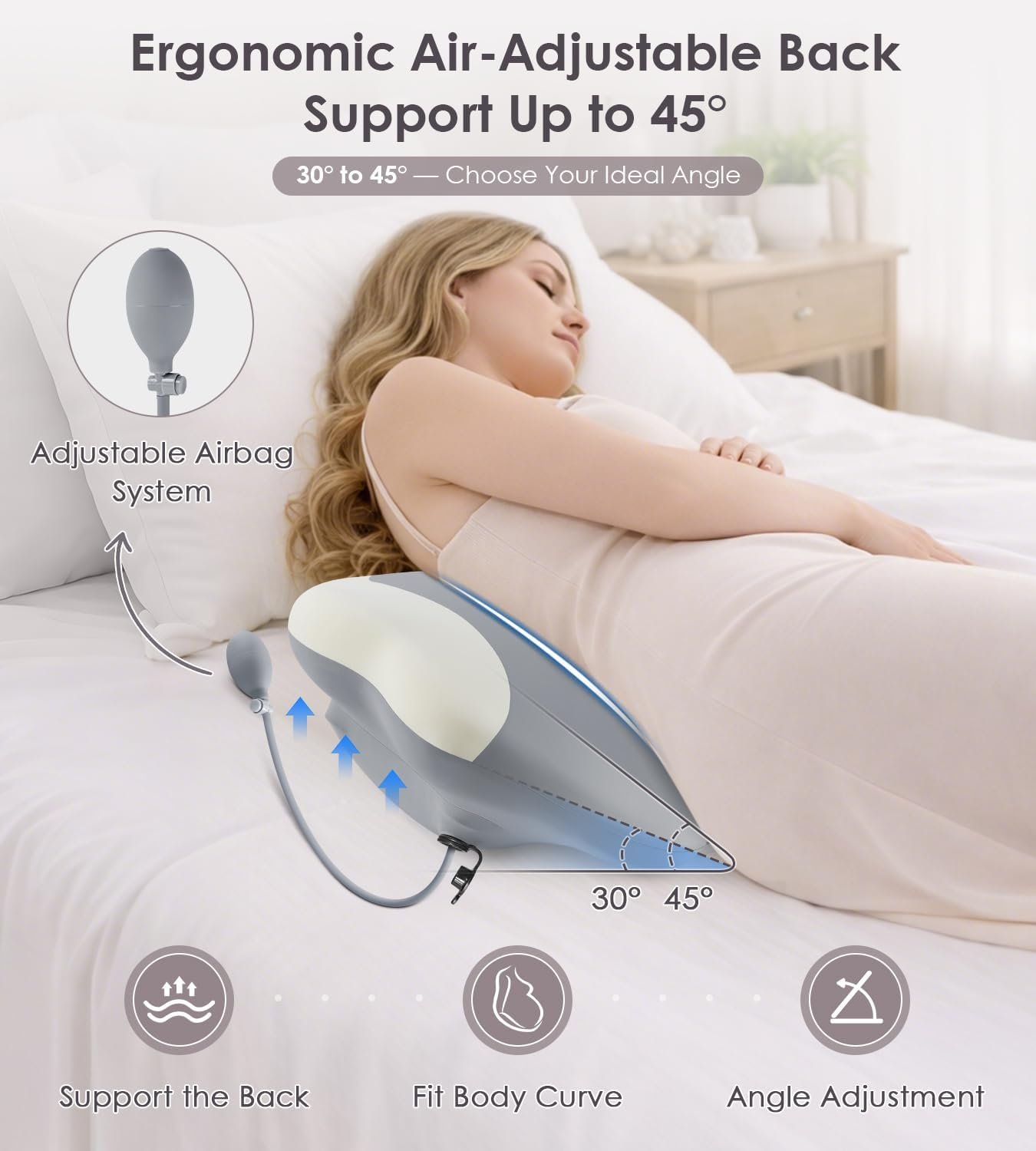โœ…๐ˆ๐ง๐ง๐จ๐ฏ๐š๐ญ๐ข๐ฏ๐ž ๐๐š๐œ๐ค ๐€๐ข๐ซ ๐‚๐ฎ๐ฌ๐ก๐ข๐จ๐ง ๐ƒ๐ž๐ฌ๐ข๐ ๐ง: Our ergonomic pregnancy pillows feature an adjustable back air cushion. You can customize the back support angle from 30 to 45 degrees. The 22-inch long air pump lets you adjust back support while lying down. It provides an ideal back pressure relief throughout all trimesters.