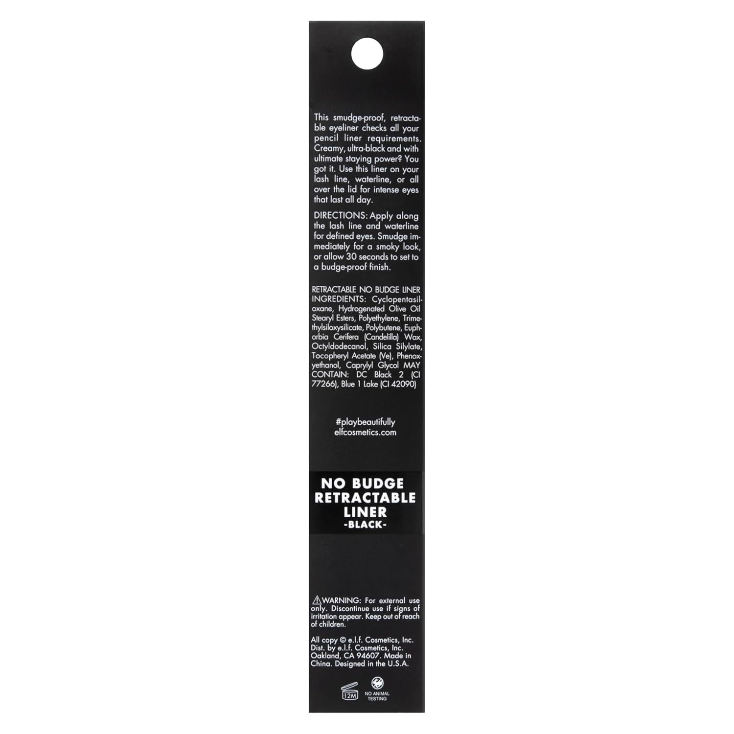 ULTIMATE EYE PENCIL: The e.l.f. No Budge Retractable Eyeliner is a waterproof, retractable eyeliner that checks all your pencil liner requirements