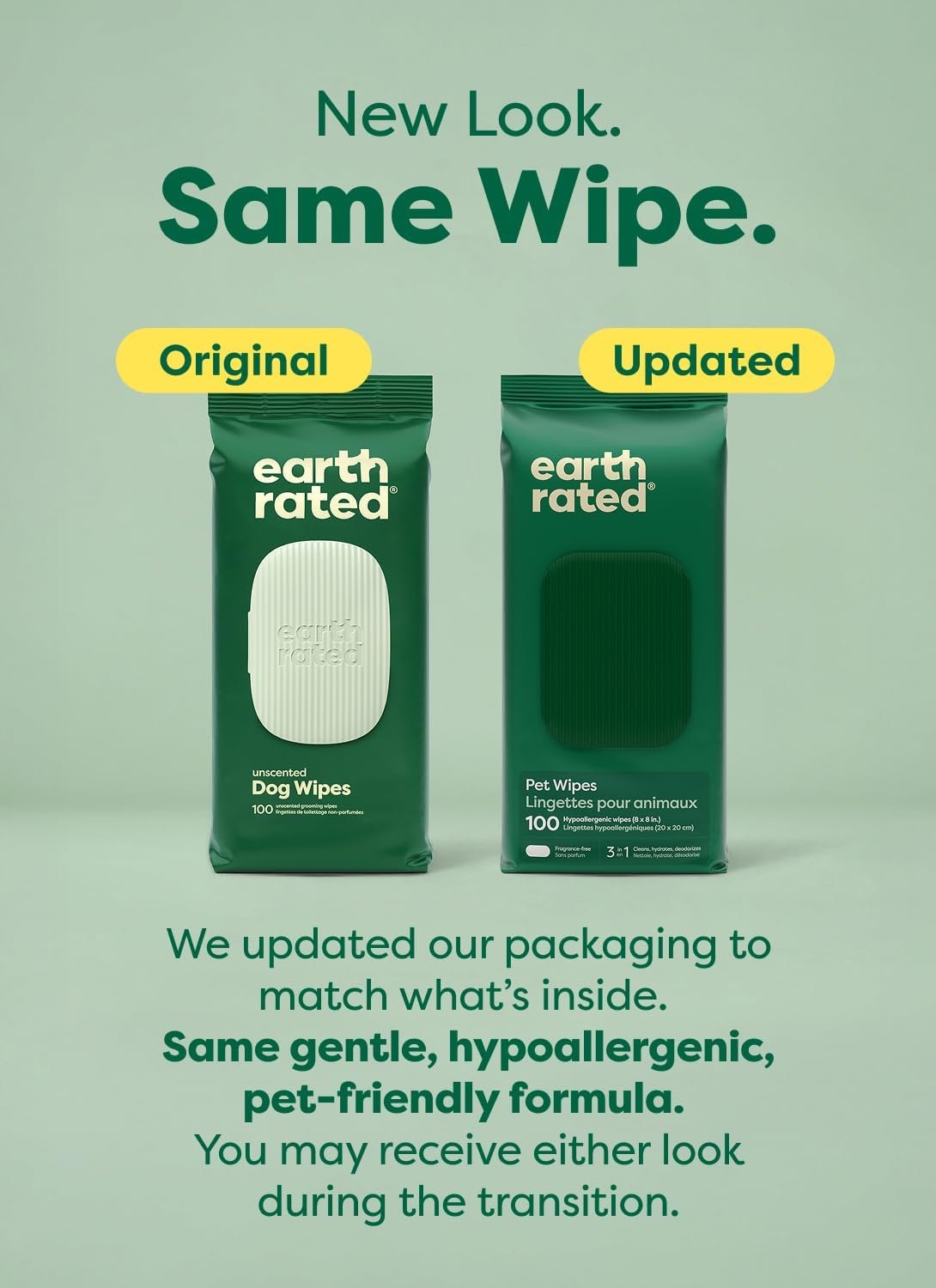 PACKAGING UPDATE: Our unscented wipes are perfect for BOTH DOGS AND CATS! Current packages may say “Dog Wipes” but new “Pet Wipes” packaging is coming soon. These TEXTURED WIPES are the ideal everyday cleaning solution for your pet’s paws, body, and butt while keeping them smelling fresh and clean.