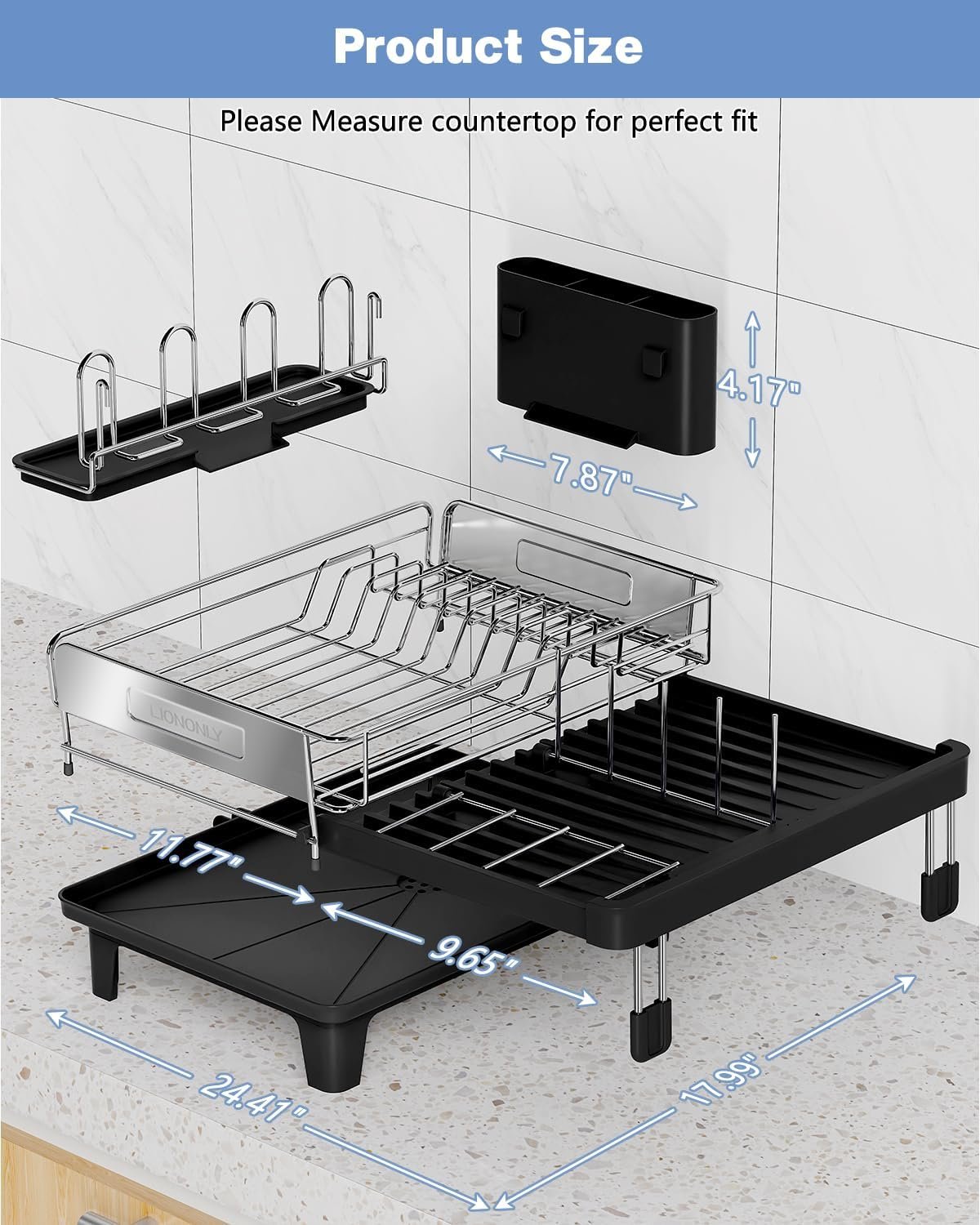 【Easy Installation & Maintenance】:LIONONLY Kitchen Large Dish Rack comes with clear instructions and a full installation video on the product page. No extra tools are needed — setup takes just minutes. All accessories can be quickly disassembled for cleaning, making maintenance effortless.