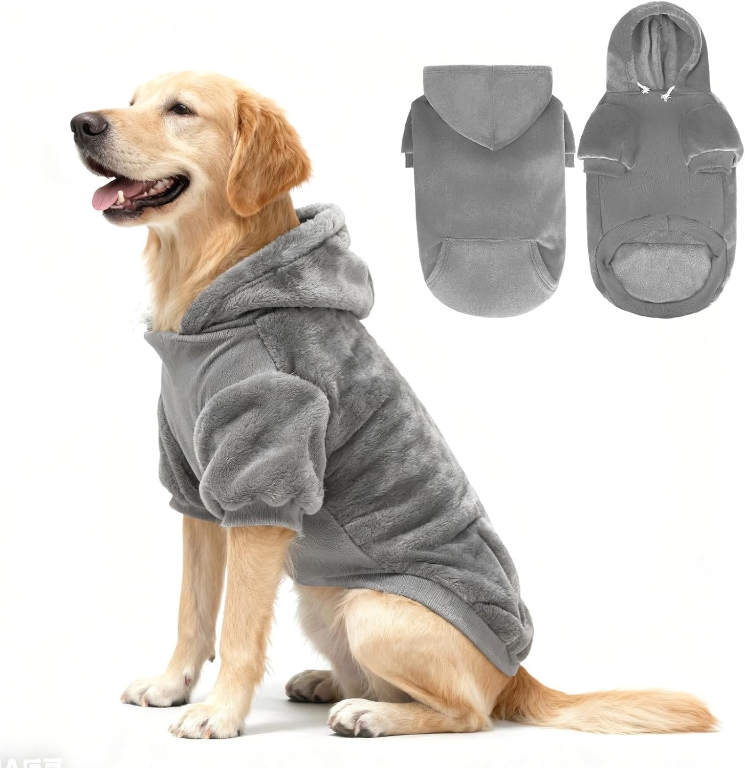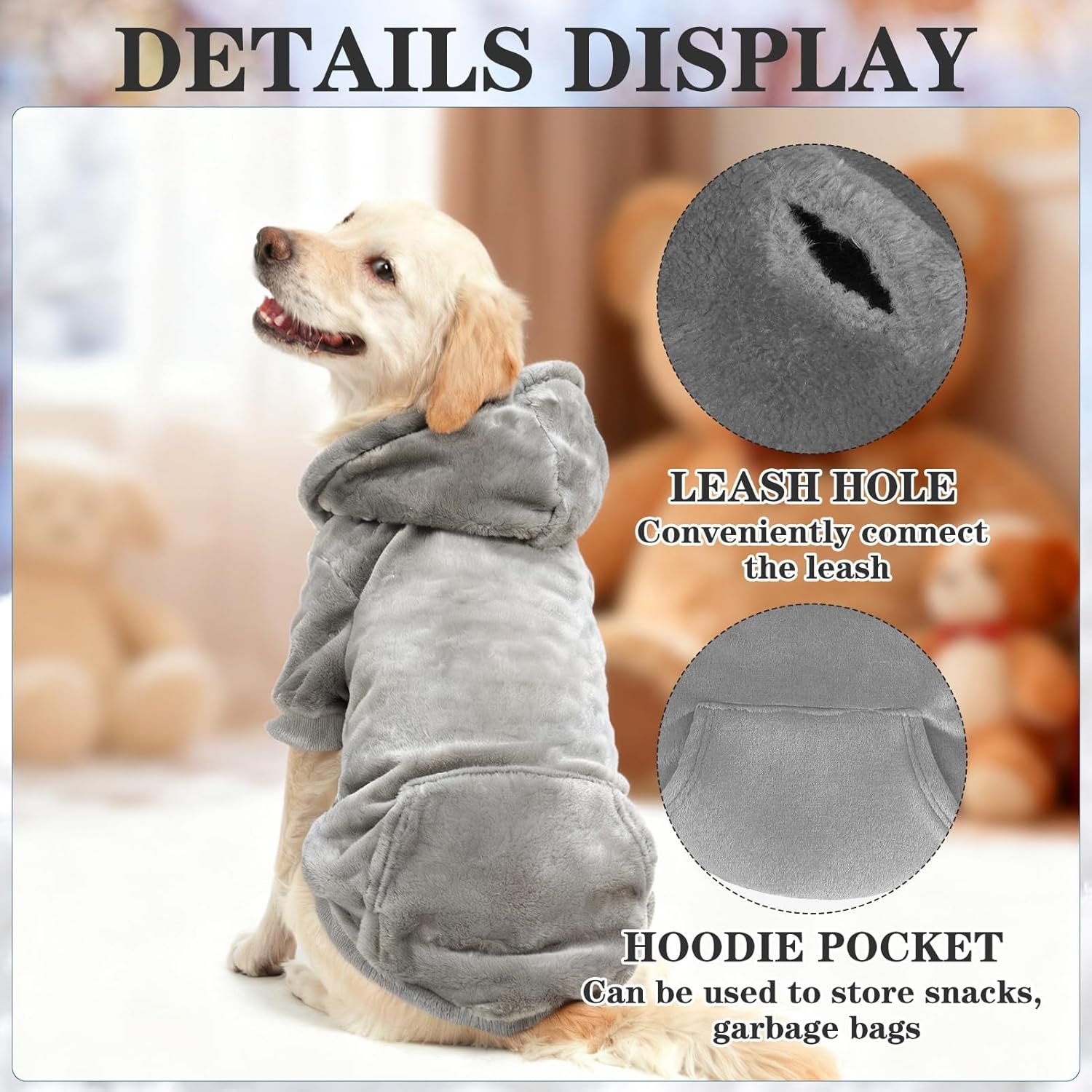 EXPAWLORER Flannel Basic Dog Hoodie with Leash Hole and Pocket for Cold Weather
