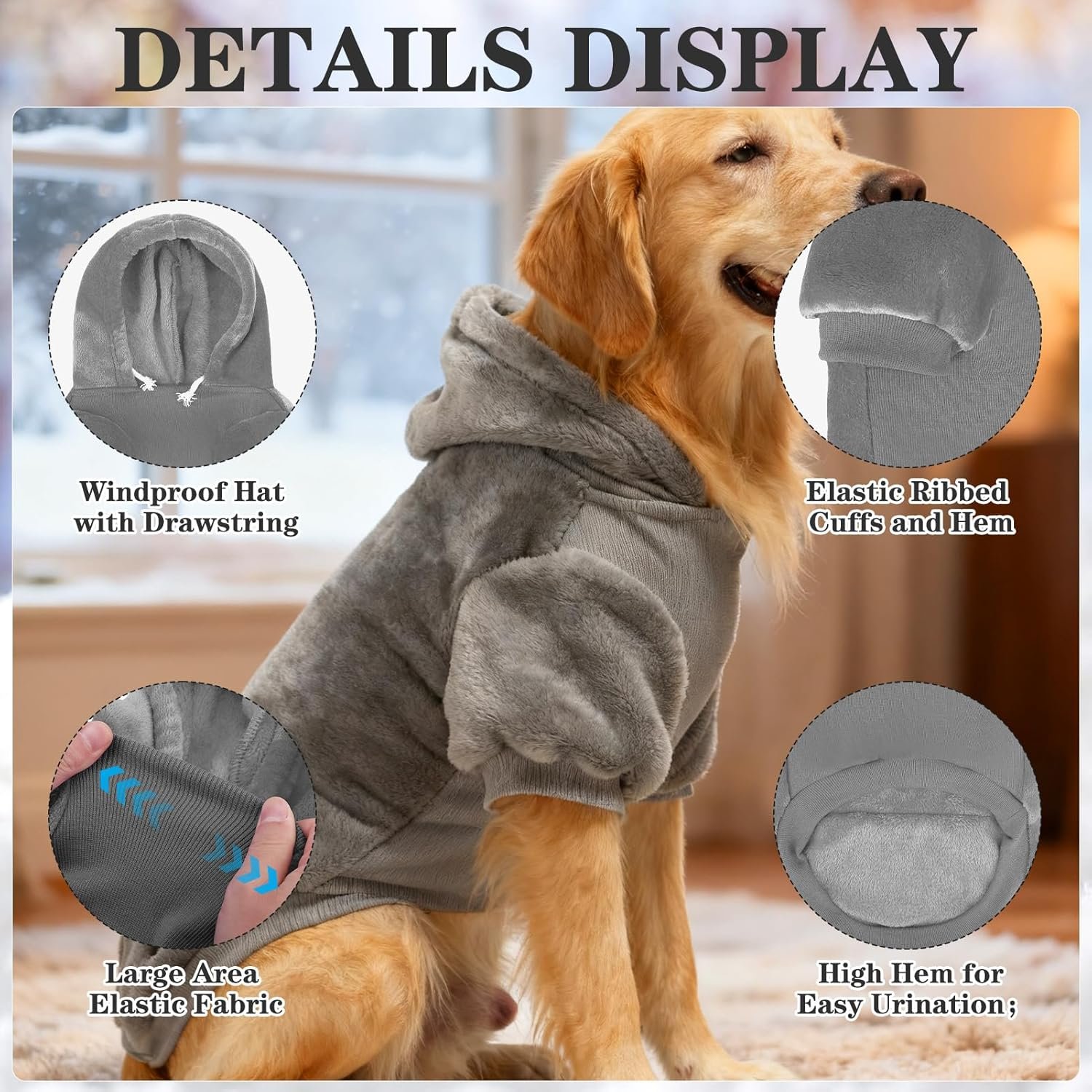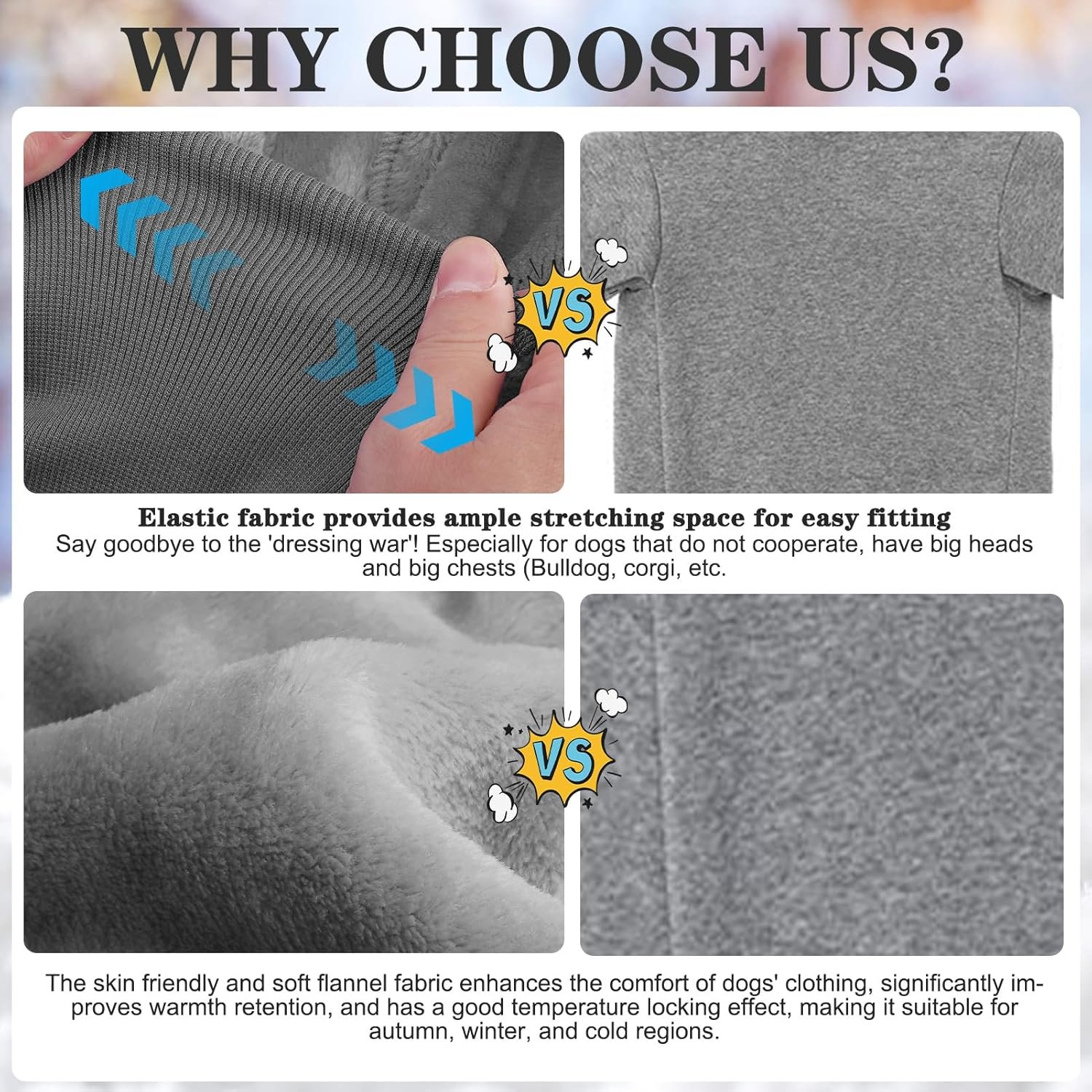 PREMIUM FLANNEL COMFORT: Our pet sweatshirt is made with a high-quality, super soft and comfortable flannel blend. So this dog cold weather clothes keeps your furry friend cozy and warm during in winter. The lightweight and breathable skin-friendly material provides optimal stretch and comfort for your dog. Durable stitching ensures it withstands playtime, even for energetic pups