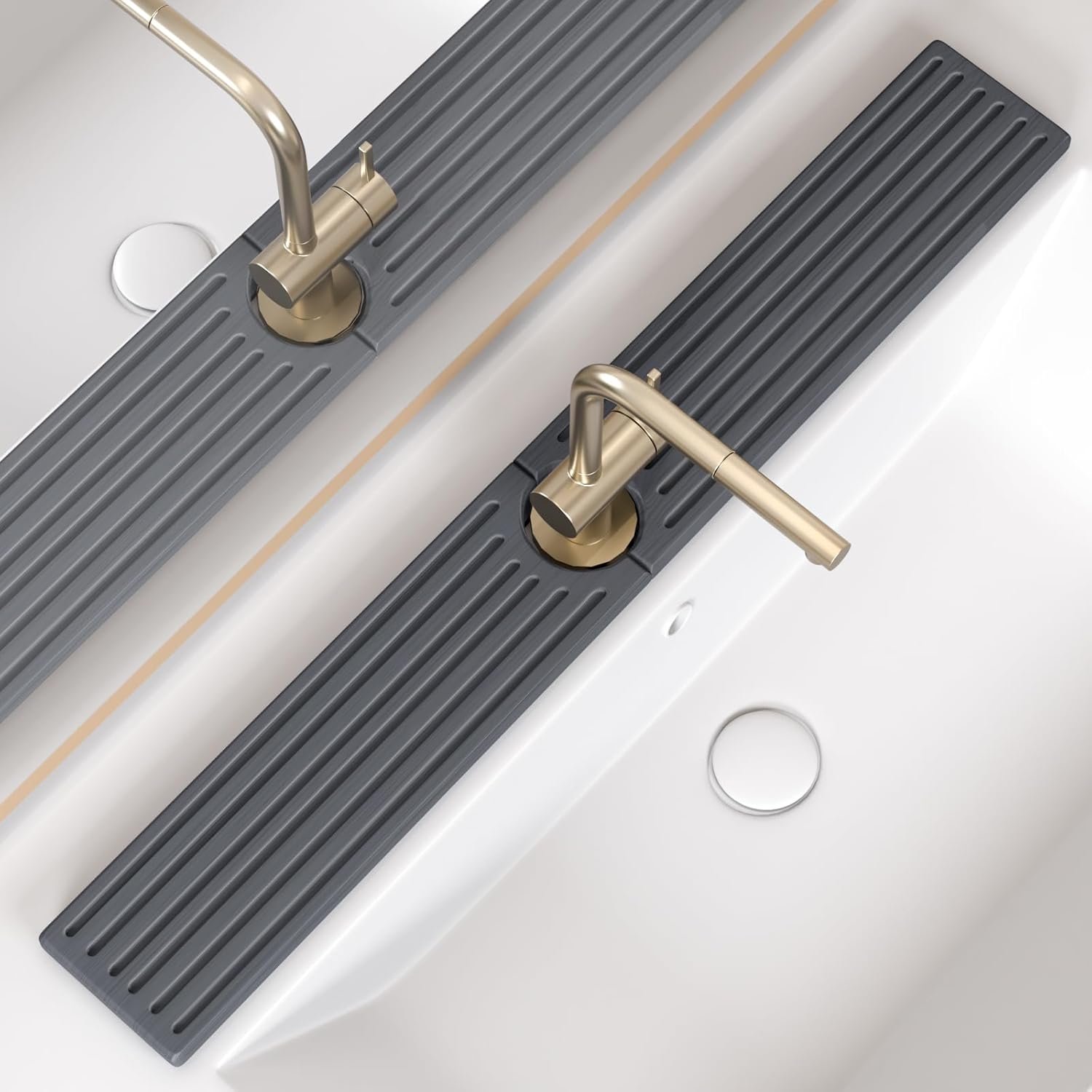 Size — Faucet mat for kitchen sink dimensions (L x W): 30″ X 4″, with a center hole diameter of 2.5″. Please ensure there is sufficient flat countertop space around the faucet before purchasing.