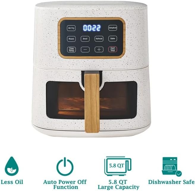 Tired of air fryers that look like industrial machines? Fast Pioneer Woman 5.8 QT Air Fryer bridges the gap between sophisticated vintage style and high-performance technology. Designed by Ree Drummond, this Linen Speckle beauty doesn’t just sit on your counter—it transforms your cooking experience.