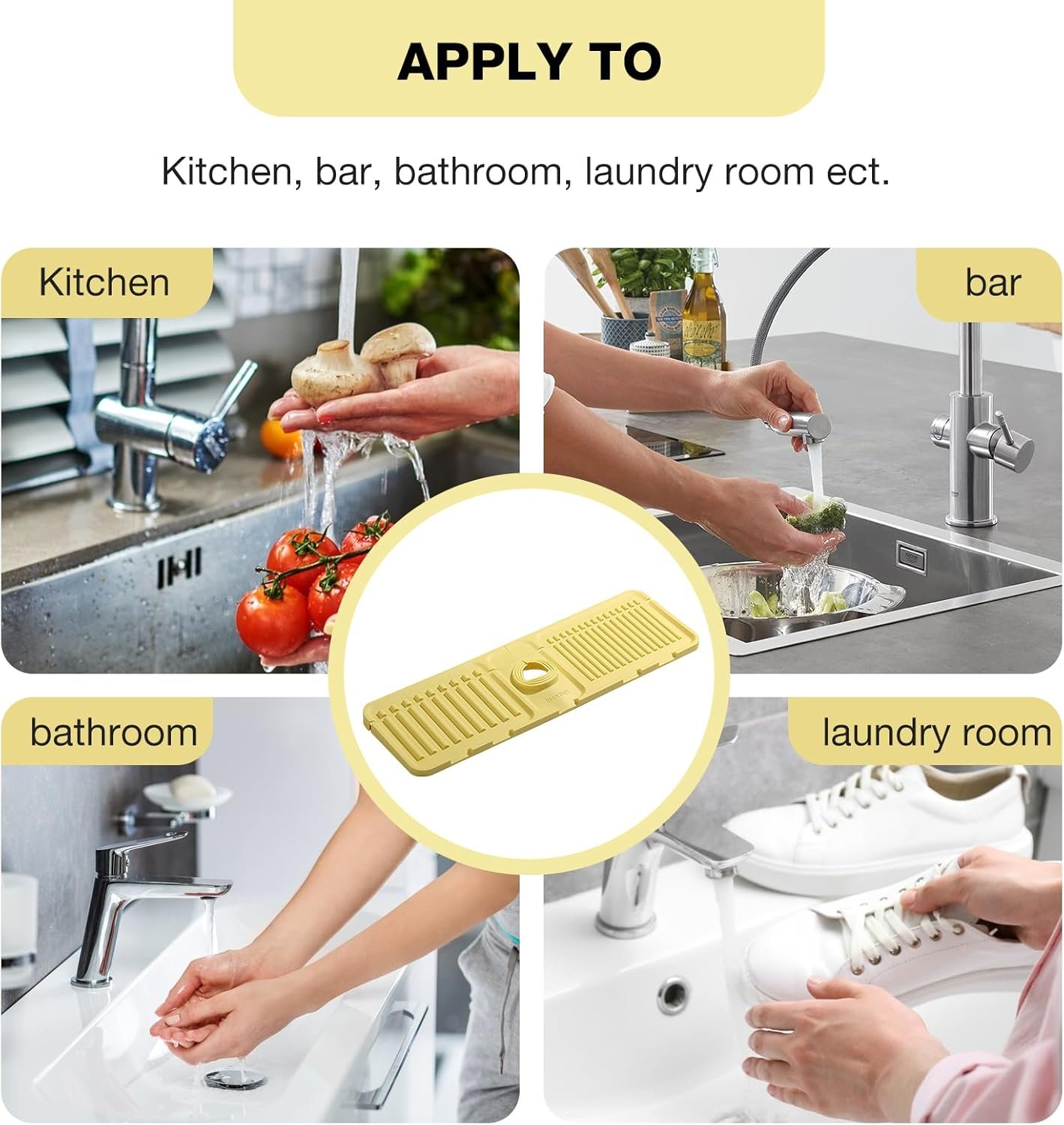 Custom Fit & Easy to Cut : This faucet mat for kitchen sink can be trimmed to fit any faucet size, making it a versatile sink protector for kitchen sink.