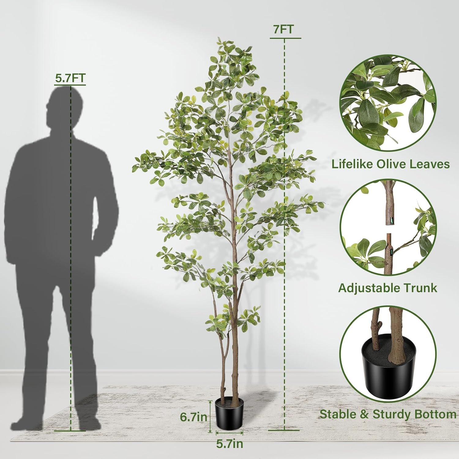 Artificial Trees for Home Decor: This 7FT black olive tree fits a variety of decorating styles. It is a great decoration for living rooms, bedrooms, study room, dining rooms and offices, and is also ideal for entryways, patios and commercial locations such as bookstores and coffee shops. The indoor faux tree is also a great gift for friends or family at Christmas and Thanksgiving