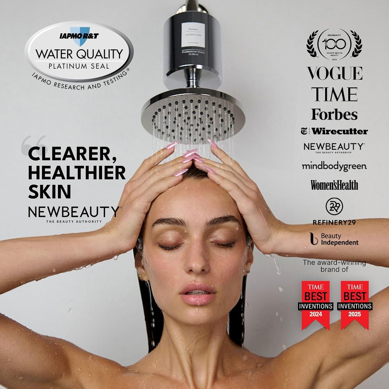 Advanced Multi-Stage Filtration – Premium Activated carbon fiber filter targets over 60 contaminants found in tap water, helping protect skin, scalp & hair from dryness, irritation, and long-term water exposure.