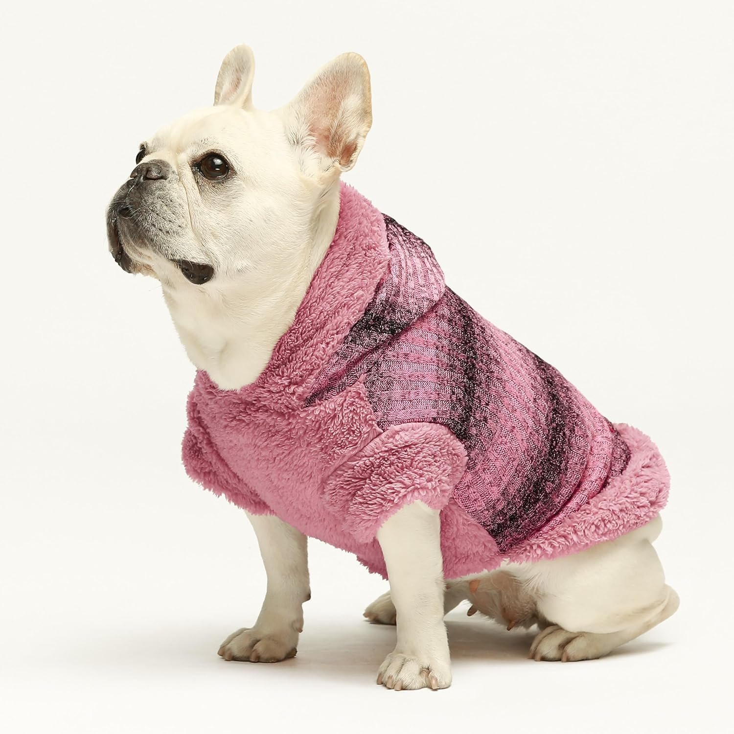 Fitwarm Fuzzy Dog Sweater, Knitted Winter Dog Clothes for Small Dogs Girl, Pet Cat Hooded Outfit, Heather Pink, Black, Large