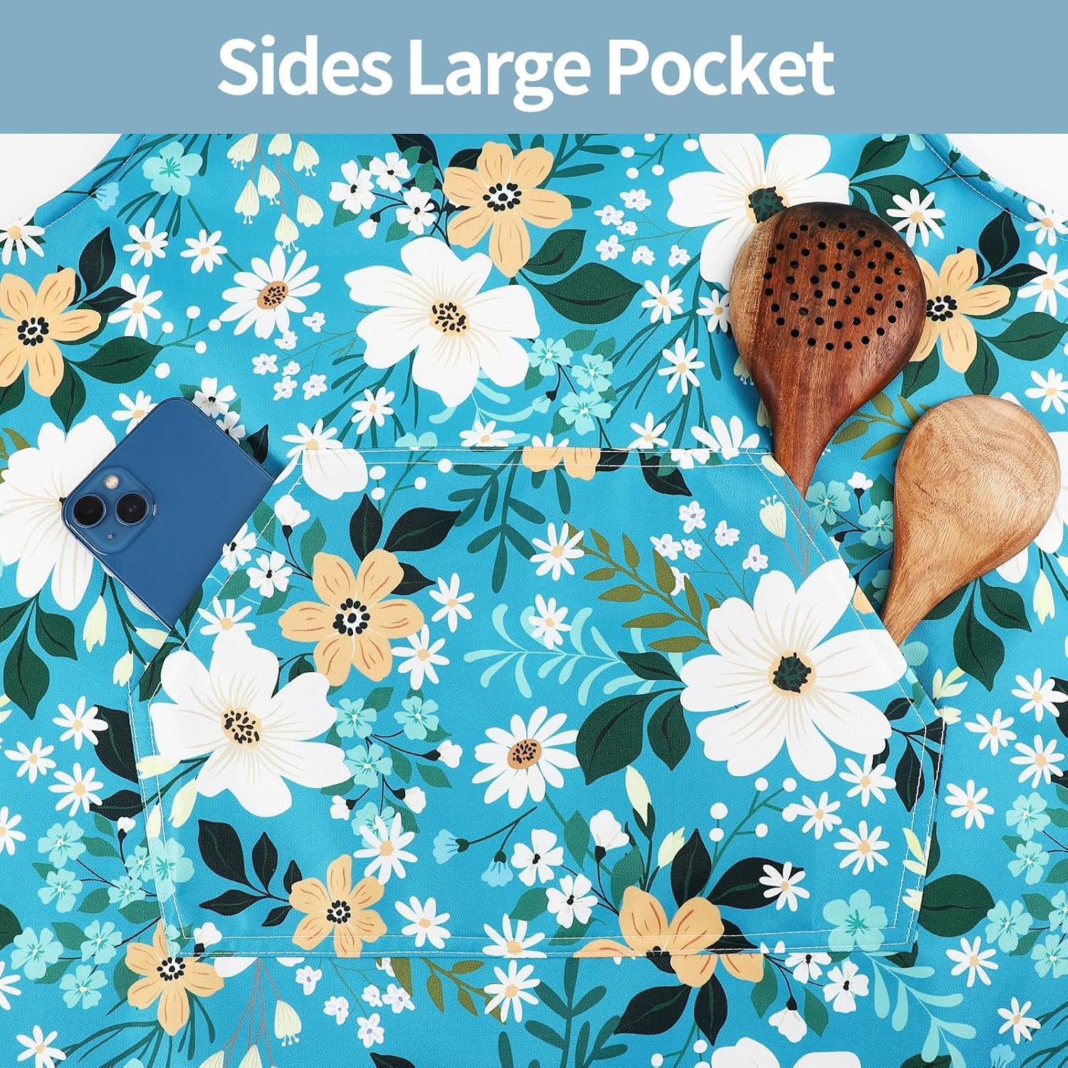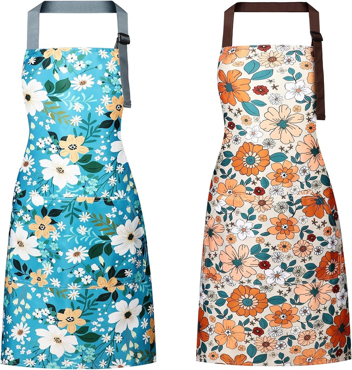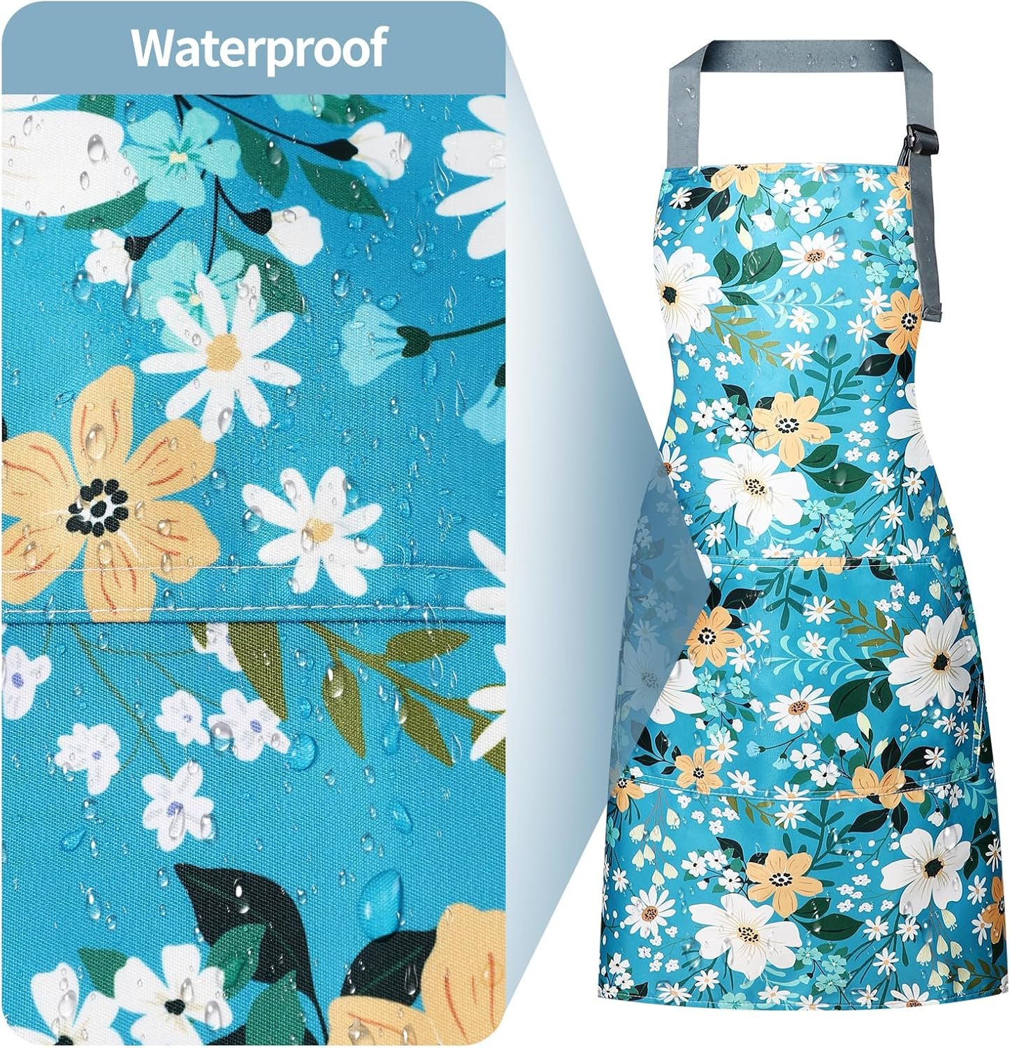 These cute aprons are made of waterproof fabric with white backing. 3D digital printed flower butterfly bird printing. No color fading problem.