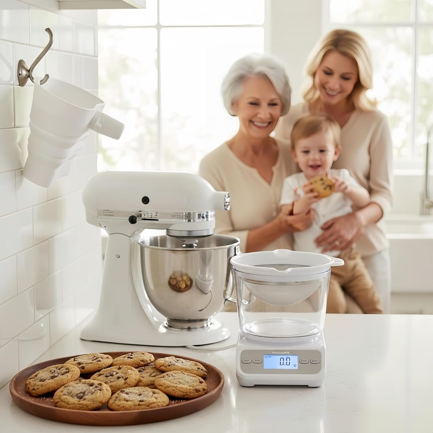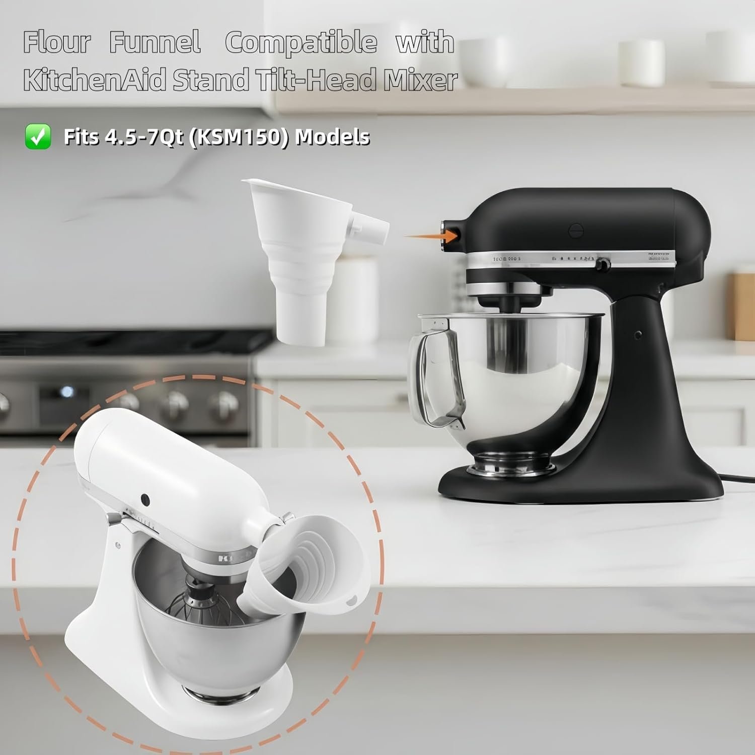 Lock the Flour Funnel Compatible with KitchenAid Stand Mixers in place and let it pour for you. Designed to fit Tilt-Head 4.5–5 Qt (KSM150) baking accessories and gadgets, it gives you true hands-free freedom. Answer a call, help a kid, or grab another ingredient—all while your mixer runs. No panic, no spills, just seamless multitasking.