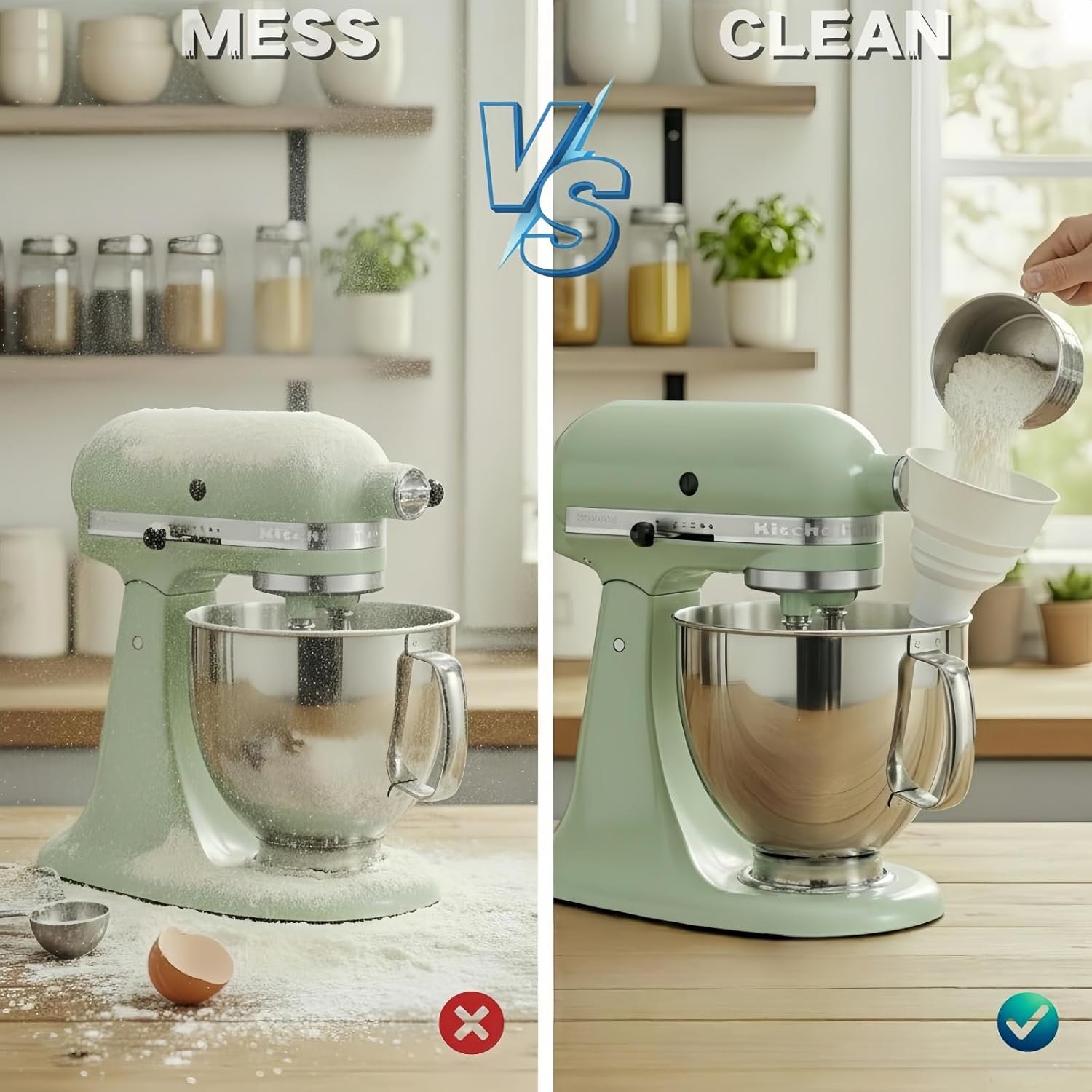 Banish the Mess & Pour with Precision! This flour funnel for kitchen aid mixer delivers flour, sugar, or milk directly into the bowl. Enjoy spotless counters, zero waste, and perfect results—the baking accessory that upgrades every recipe