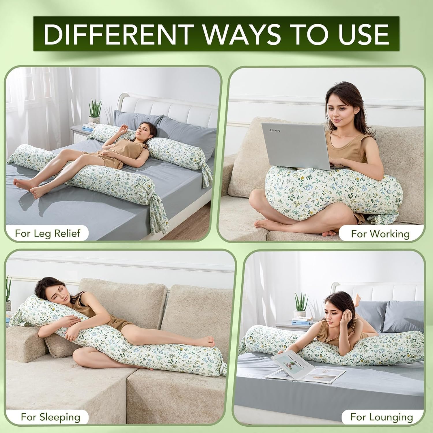 【Versatile Use from Bed to Couch】More than just a sleep aid, this versatile cylinder body pillow is your perfect companion for reading in bed, watching TV on the couch, gaming, nursing, or providing essential support during pregnancy and recovery.