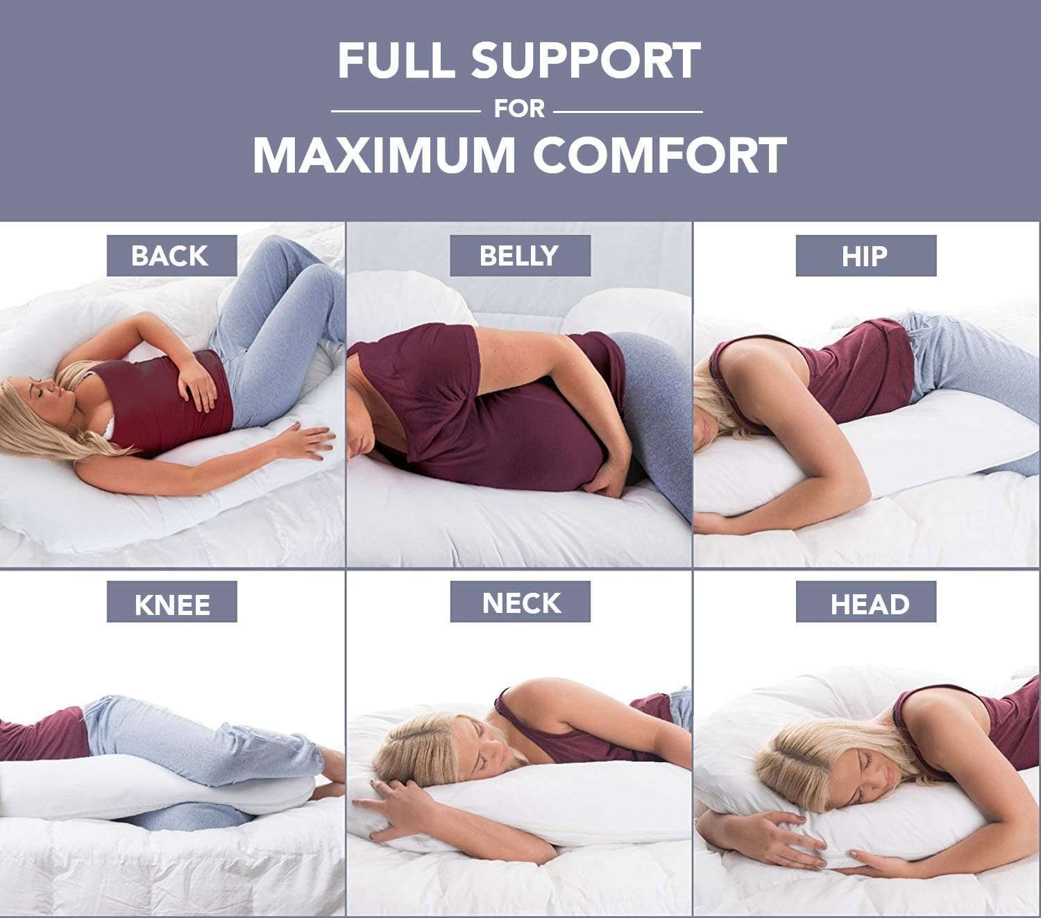 Super Long Body Pillow for regnancy: Though designed for expecting or breastfeeding mothers, this U shaped body pillow also helps side sleepers, separate your legs, and offers belly, arm & neck support.