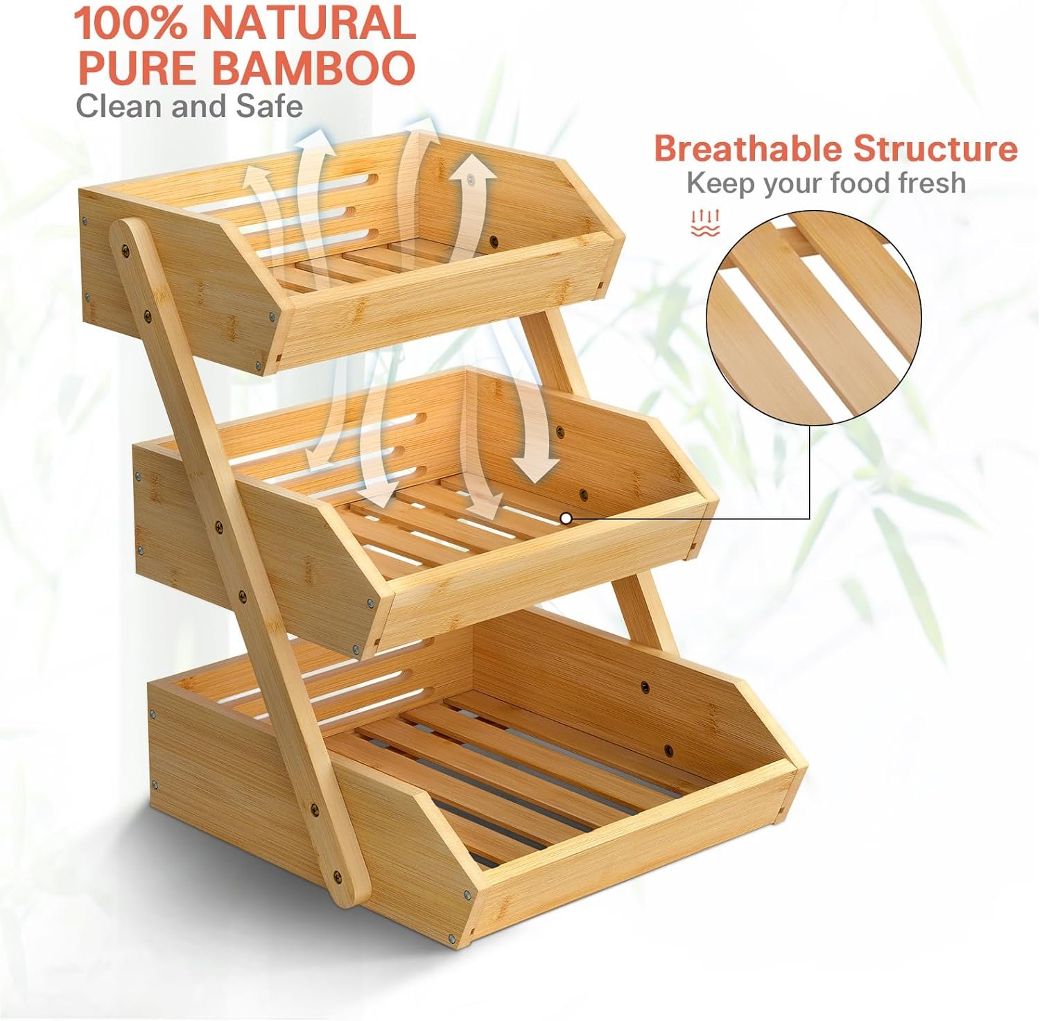 PRODUCE ORGANIZER: 3 tier breathable structure allows air to flow from different angles. Great for organizing fruit and vegetables and keep them fresh and last longer.