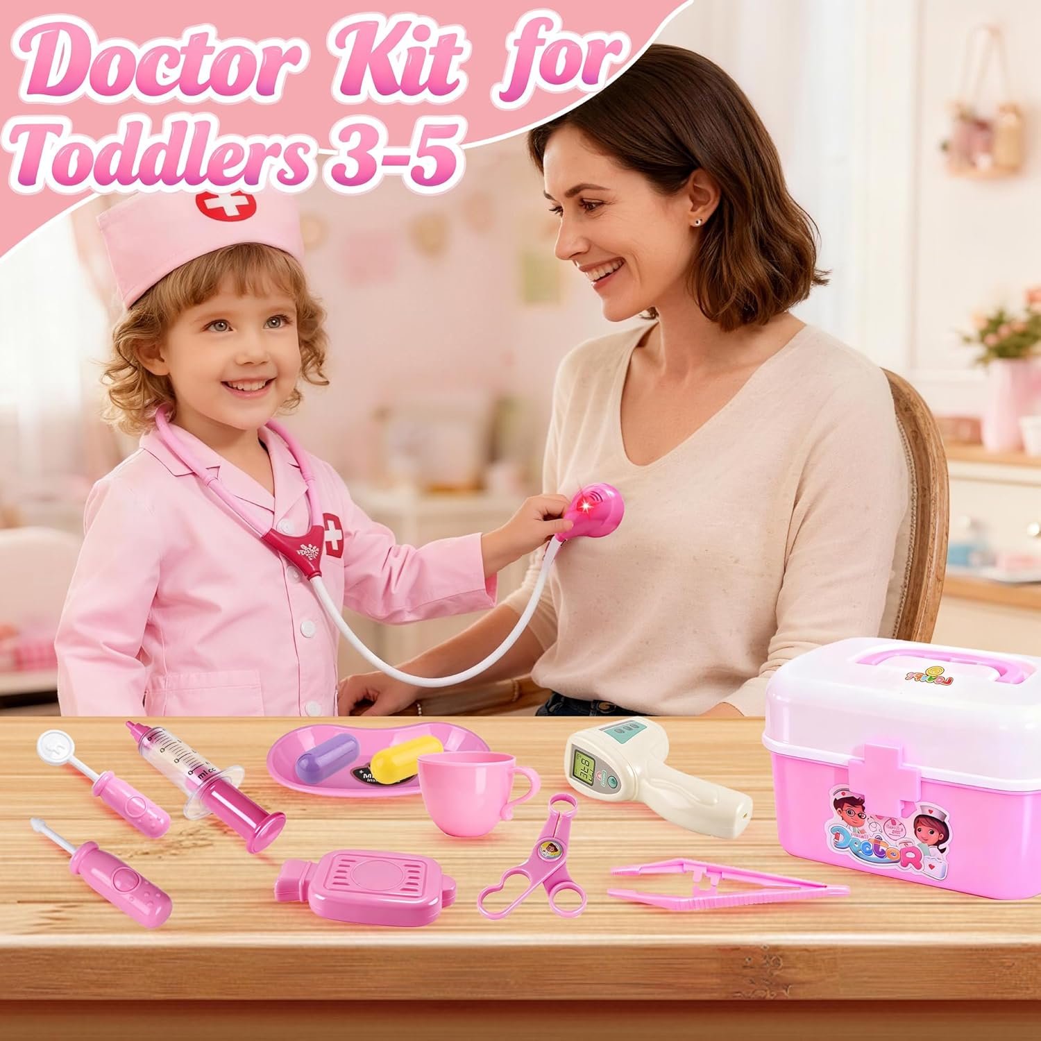 Easy to Store & Carry Anywhere – Includes a cute storage medical box to keep all accessories neatly organized. Lightweight and portable, this pretend play doctor kit is perfect for travel, playdates, preschool, or family bonding activities.Easy to Store & Carry Anywhere – Includes a cute storage medical box to keep all accessories neatly organized. Lightweight and portable, this pretend play doctor kit is perfect for travel, playdates, preschool, or family bonding activities.