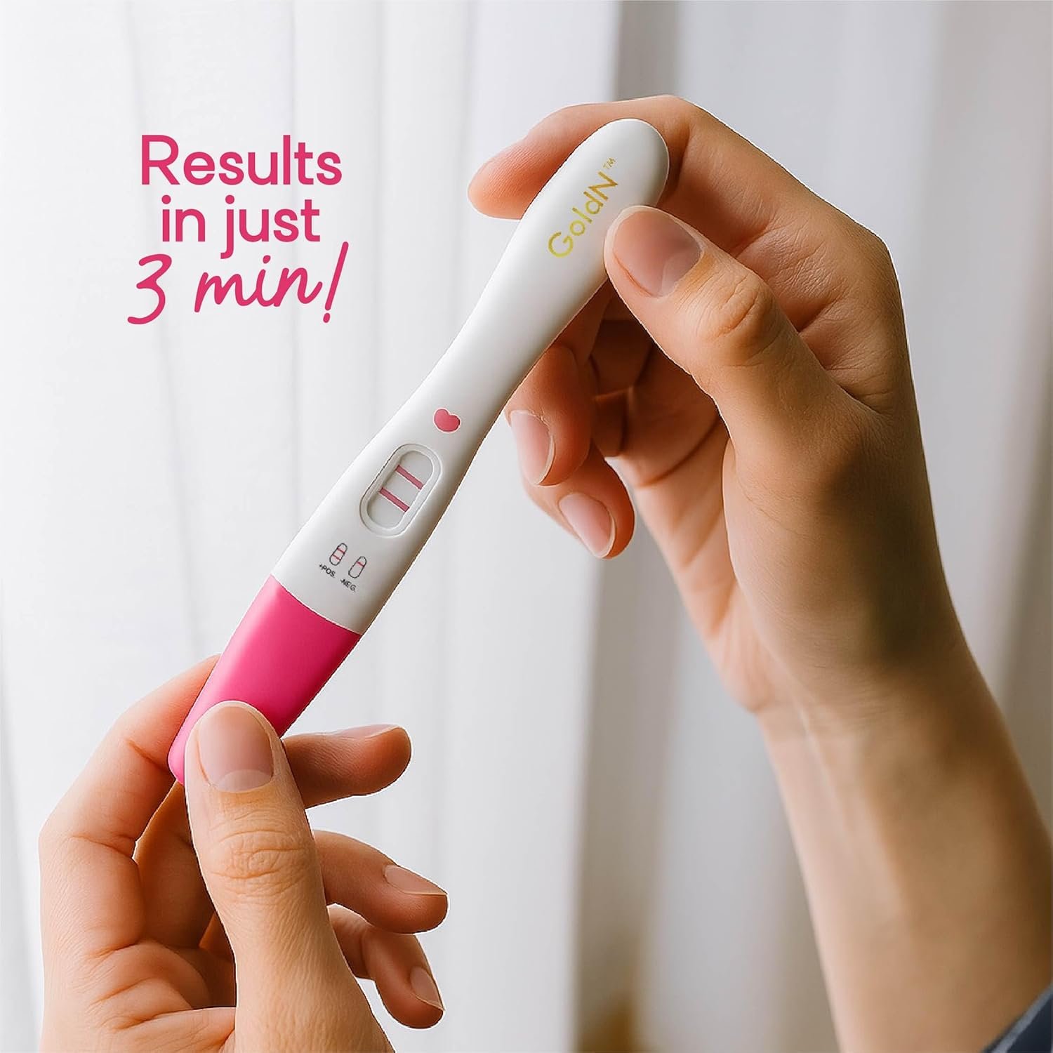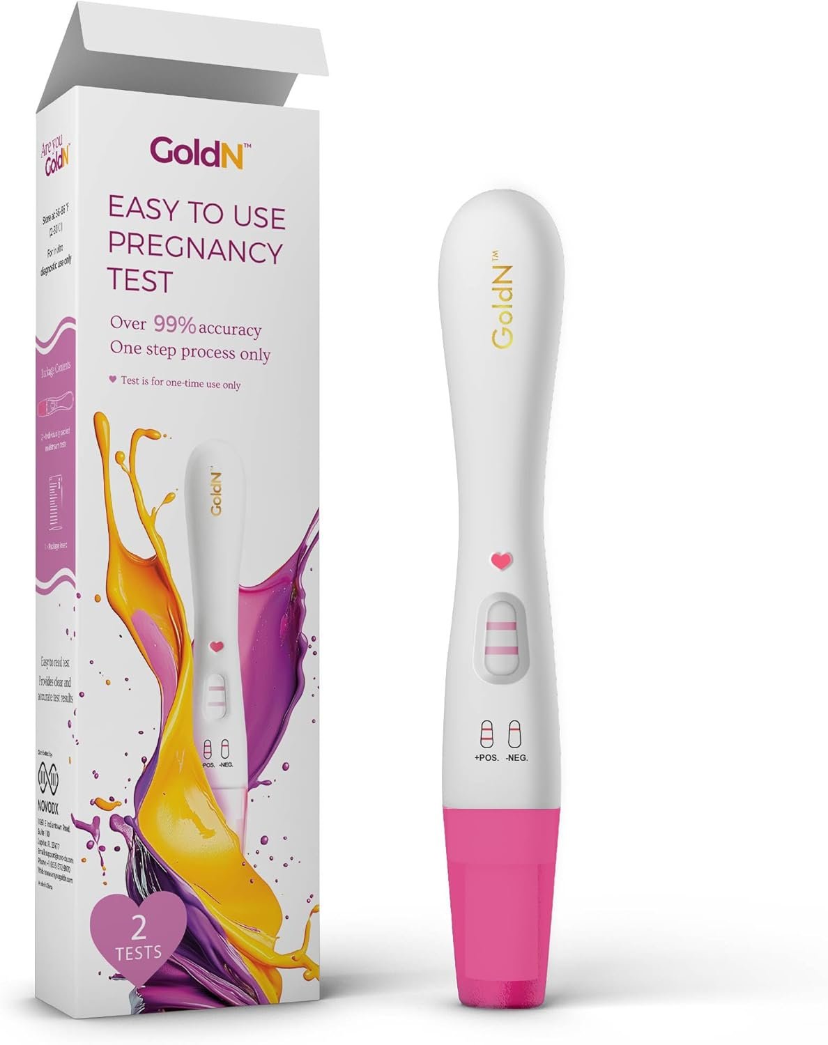 GoldN™ Early Detection Pregnancy Test for Women – HCG Midstream Kit | 99% Accurate & Easy-to-Use | Fast Results with Pink Heart Indicator | Mess-Free, FDA-Approved, Discreet Strips | 2 Tests