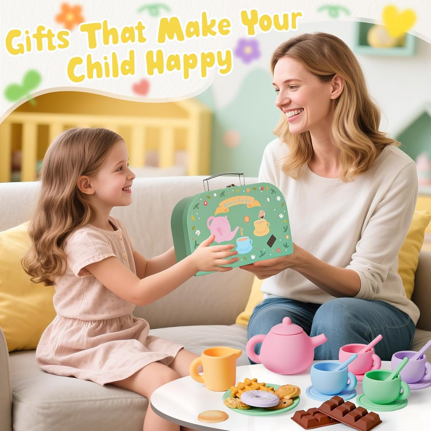 IDEAL GIFTS: Packaged in an exquisite carrying case, our silicone tea set for toddlers 3-5 makes a thoughtful gift for birthdays, Christmas, or any special occasion. This is great toys for 3 4 5 year old little girls and ideal gift. Also can be used as household decorations when not playing. Making it a perfect back to school, birthday, Christmas, Easter, New Year gift