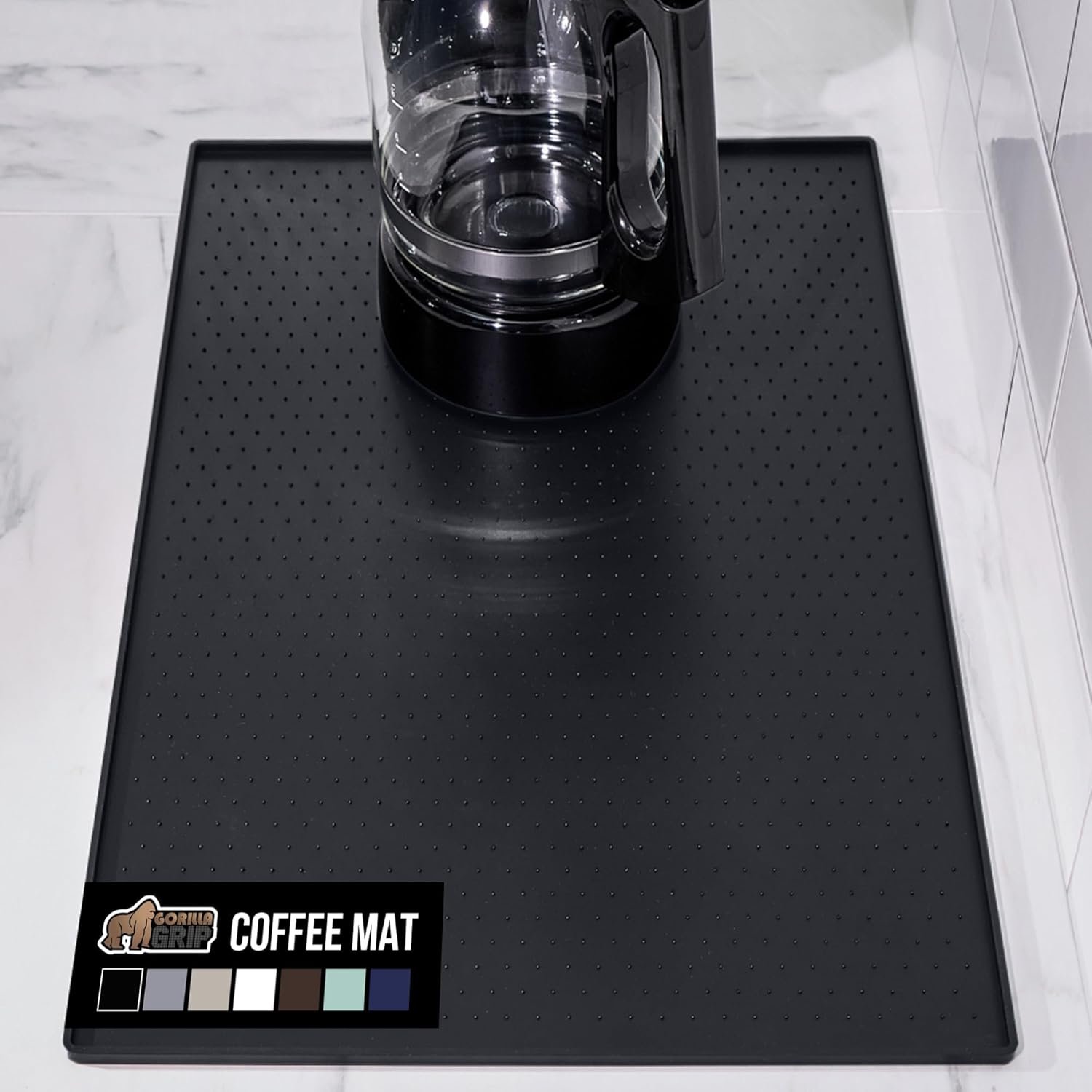 GORILLA GRIP Silicone Coffee Mat, Espresso Machine Bar Accessories, Keep Kitchen Counters Clean, Stays in Place, Waterproof and Heat Resistant Dish Drying Mats, Home Decor Essentials, 11.5×18.6, Black