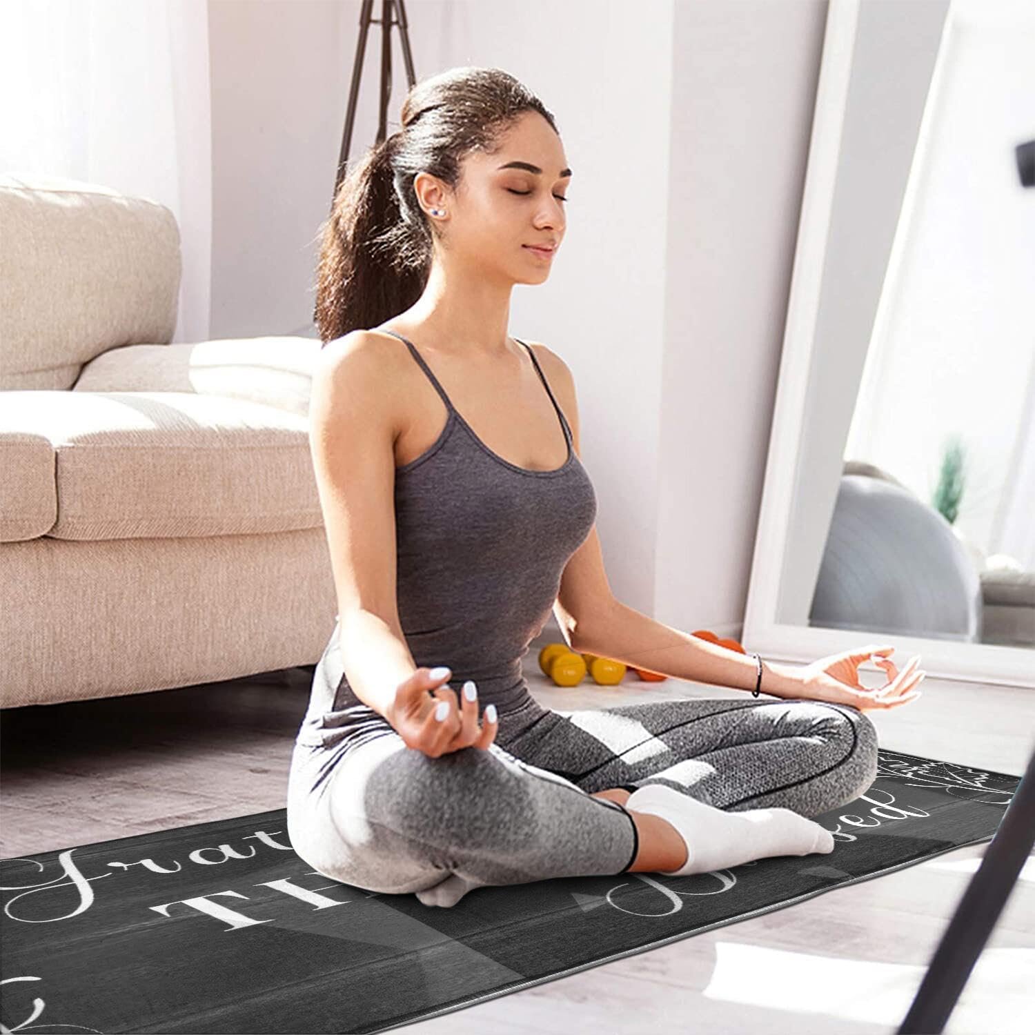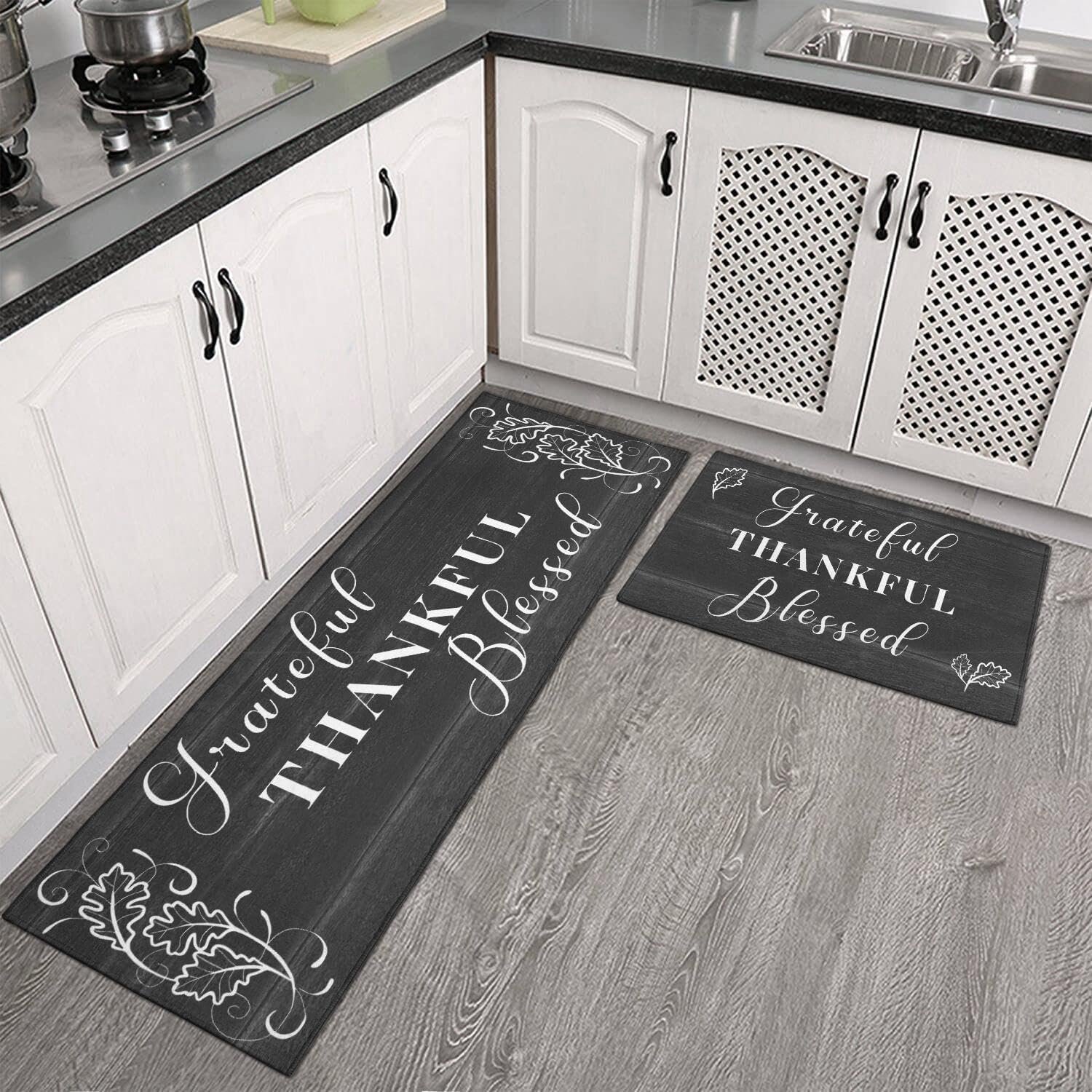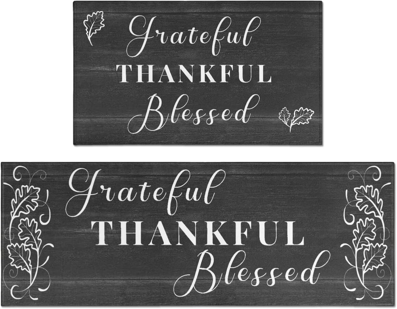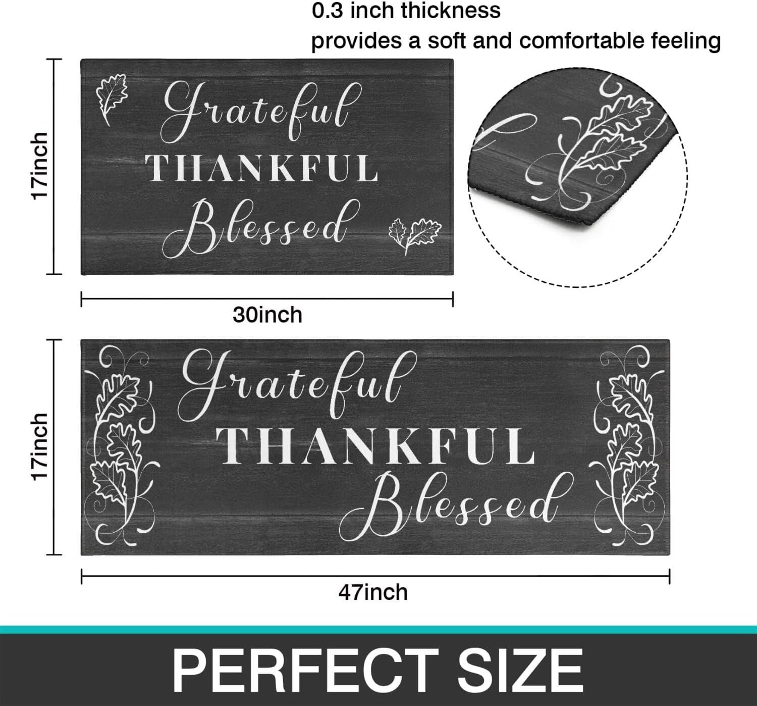 Perfect Size & Material: Protikol grateful thankful blessed kitchen rugs set of 2, including a 17″x30″ and 17″x47″ mat, is crafted with premium microfiber material. Experience the perfect combination of style and functionality with these black kitchen mats 2 piece, designed to add charm to your space while providing a soft 0.3-inch cushioned support for your feet.
