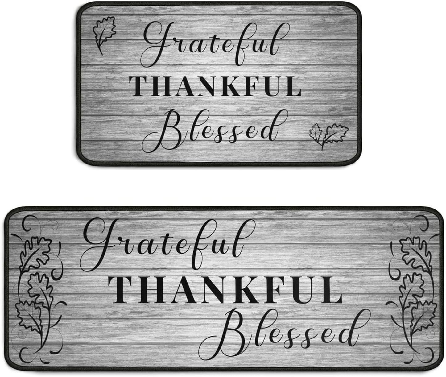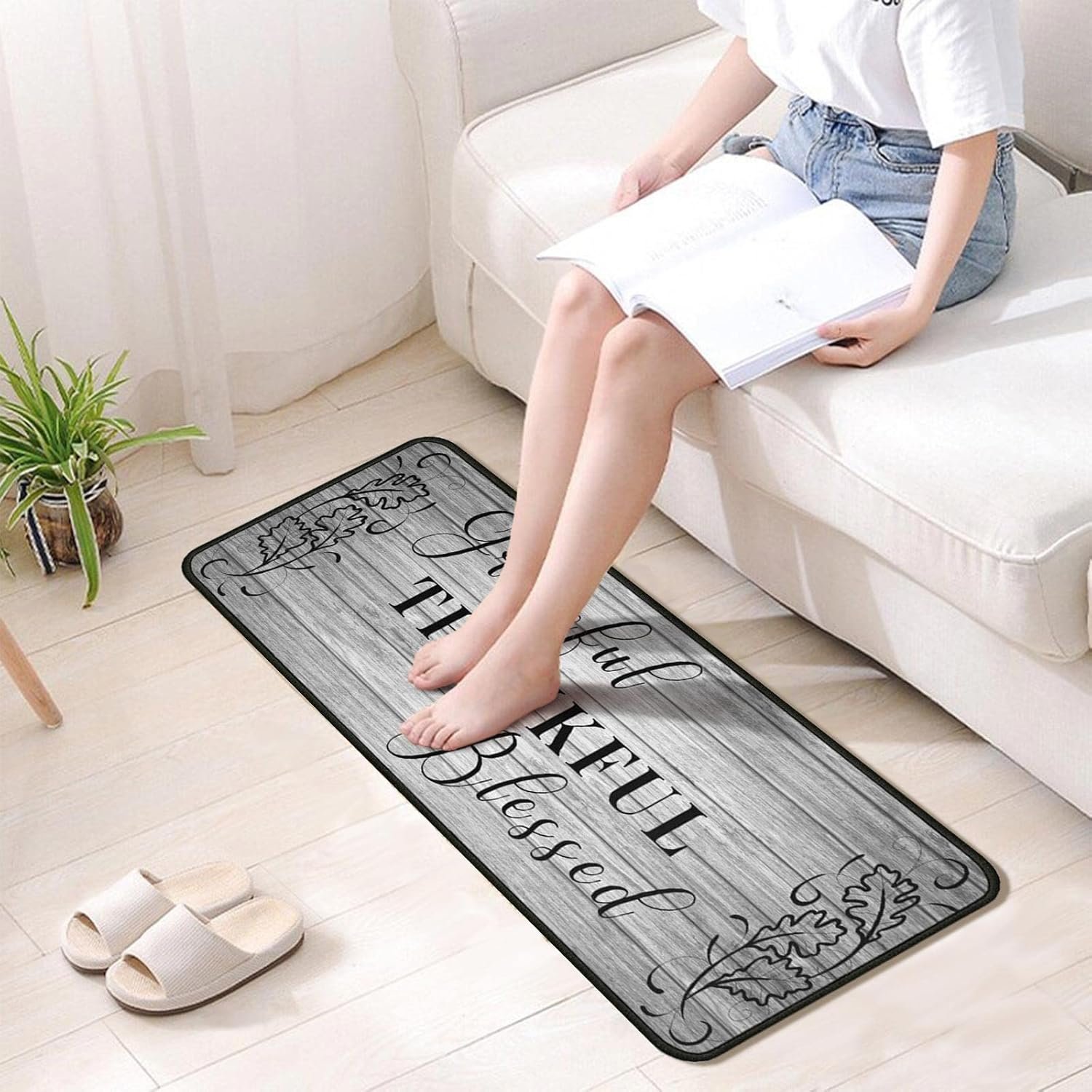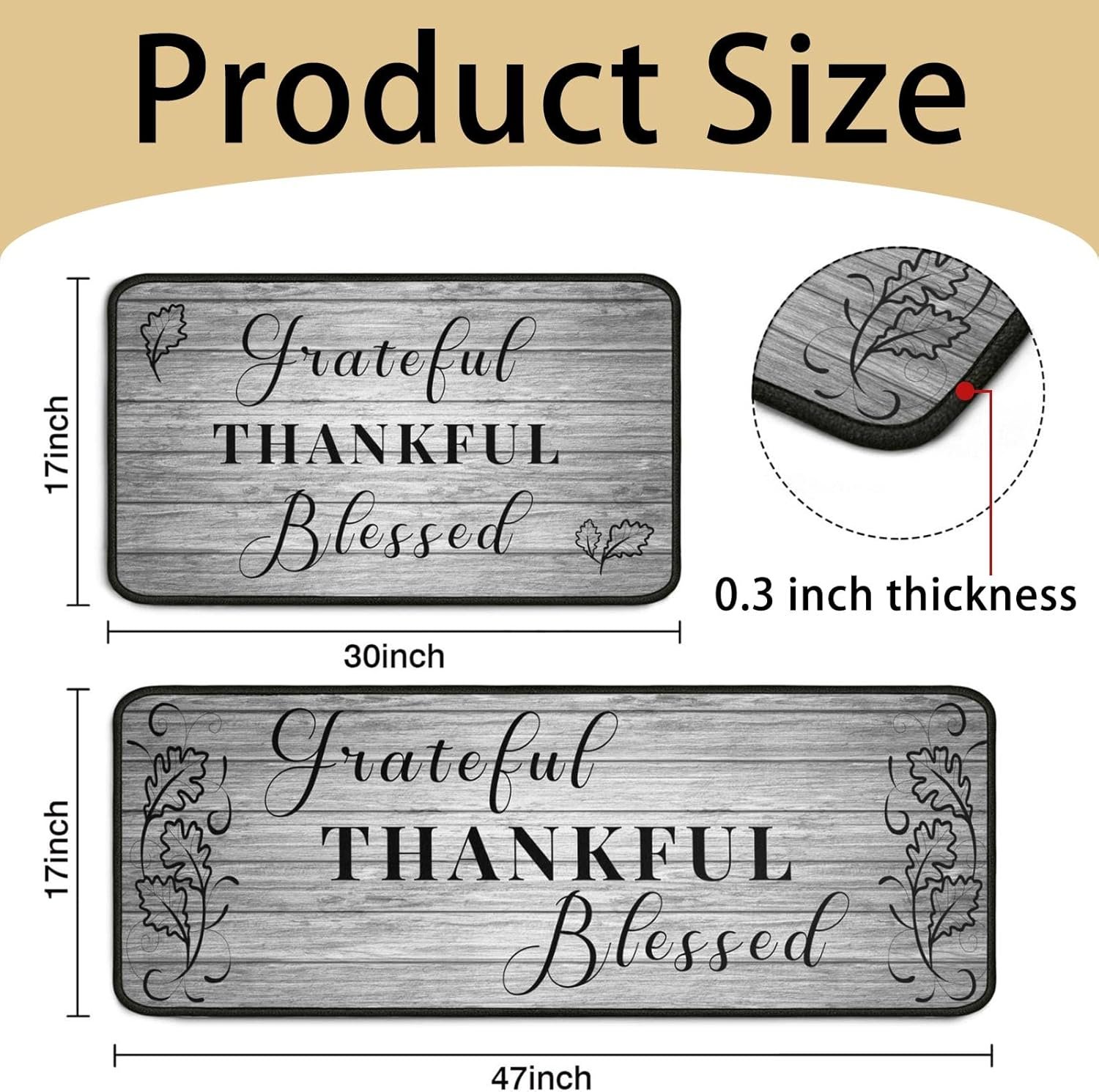 Perfect Size & Material: Protikol grateful thankful blessed kitchen rugs set of 2, including a 17″x30″ and 17″x47″ mat, is crafted with premium microfiber material. Experience the perfect combination of style and functionality with these grey kitchen mats 2 piece, designed to add charm to your space while providing a soft 0.3-inch cushioned support for your feet.