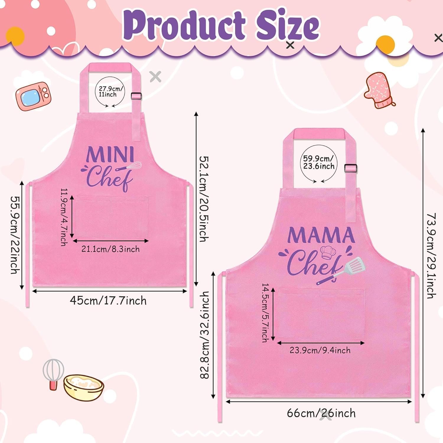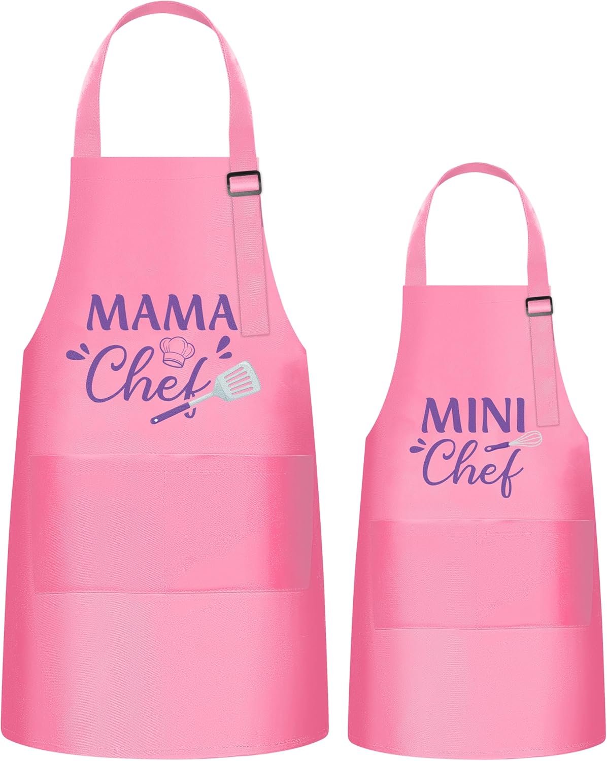 Cute Designs: The package contains 2 set adult and kids apron sets, printed with pink mama chef and mini chef pattern, bright color and vivid pattern, cute and attractive, it can stimulate children’s creativity and imagination.