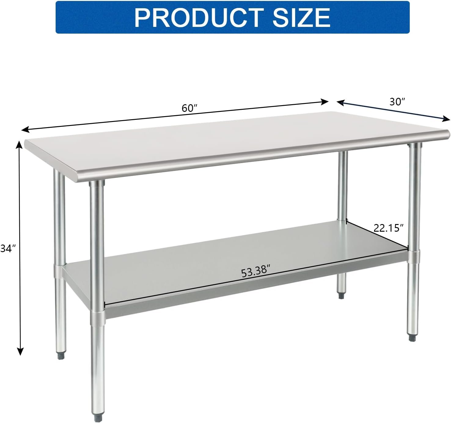 【LARGE STORAGE SPACE】- The 30 x 60 inches dimension provides an ample space for commercial kitchen. The top shelf has a weight capacity of 625 lb and the undershelf has a weight capacity of 480 lb, this unit is sturdy and utilitarian enough for food prep, such as store microwave, oven, air fryer, etc.