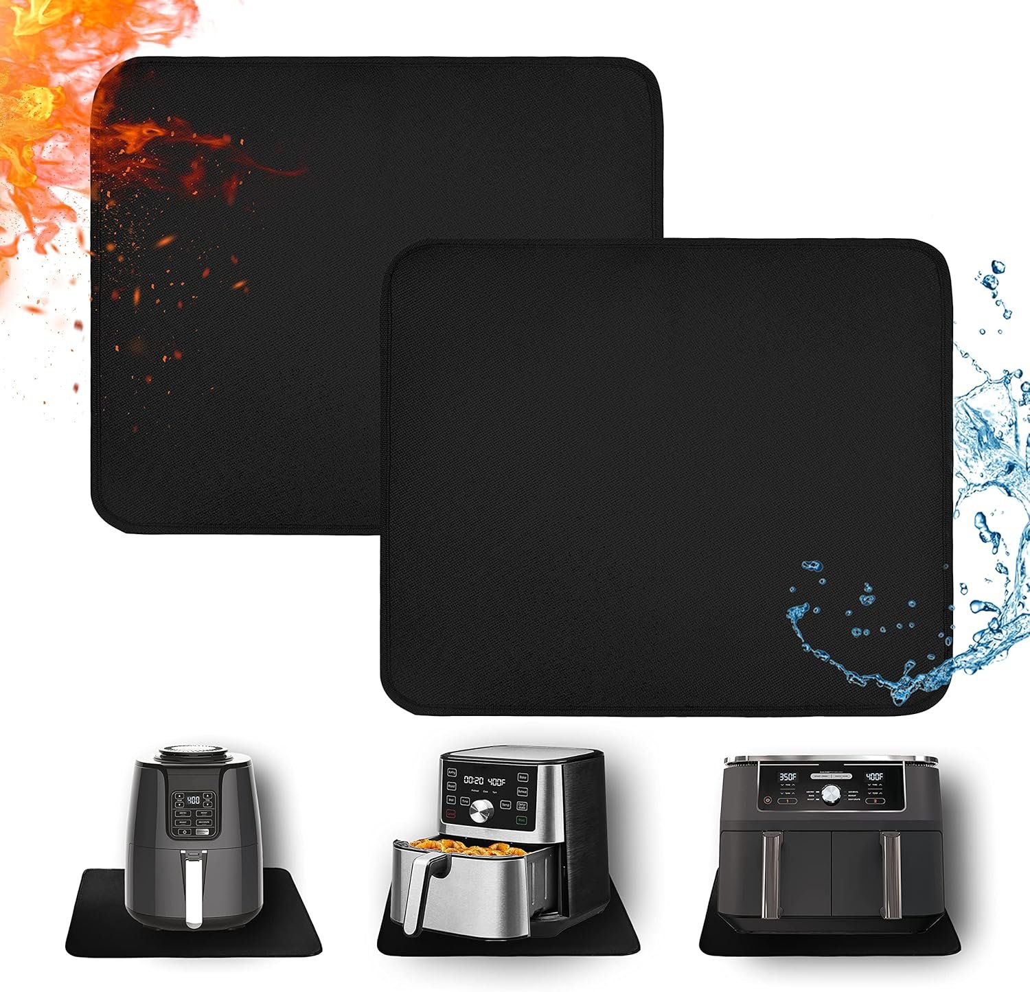 Heat Resistant Mats for Countertop – Fireproof 15×18 in Heat Resistant Mats for Air Fryer – Hot Pad Air Fryer Mat Compatible with Ninja,COSORI,Cuisinart for Coffee Maker, Toaster, Oven 2PCS – Black
