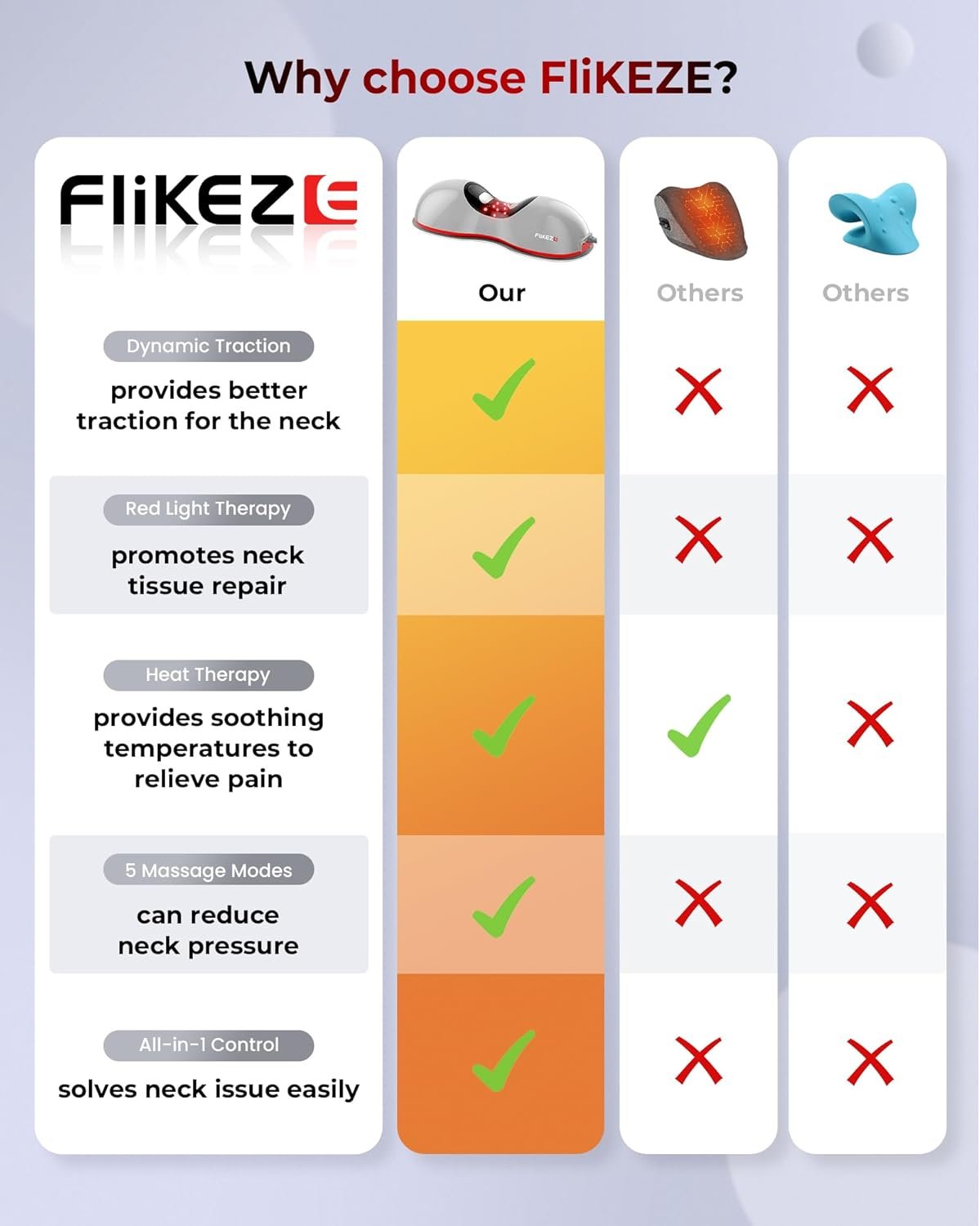 【Feature with Red Light Therapy】FliKEZE neck traction device adopted NEW red light therapy technology that can promote the metabolism and tissue repair of neck cells, better relieve the tension and spasm of neck muscles. The cervical traction device is very suitable for people with tension headaches, TMJ, poor posture, tech neck or neck problems and pain.