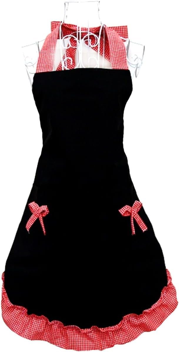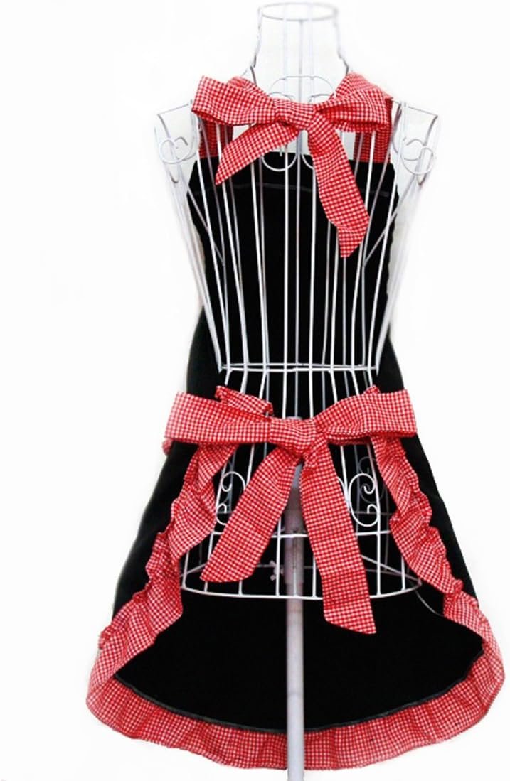 Apron ties at the waist and has an adjustable neck strap.Recommend to slim and medium height girls and women.