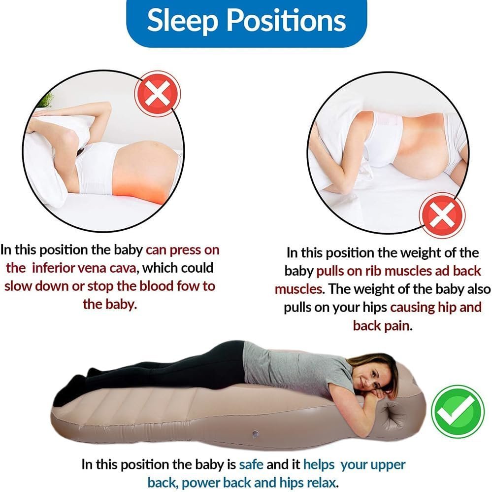 Durable & Safe Materials: Crafted from high-quality, phthalate-free PVC, this inflatable pregnancy pillow is both durable and safe. The smooth surface and botanical velvet offer a luxurious feel, making it a perfect pregnancy pillow for stomach sleepers.