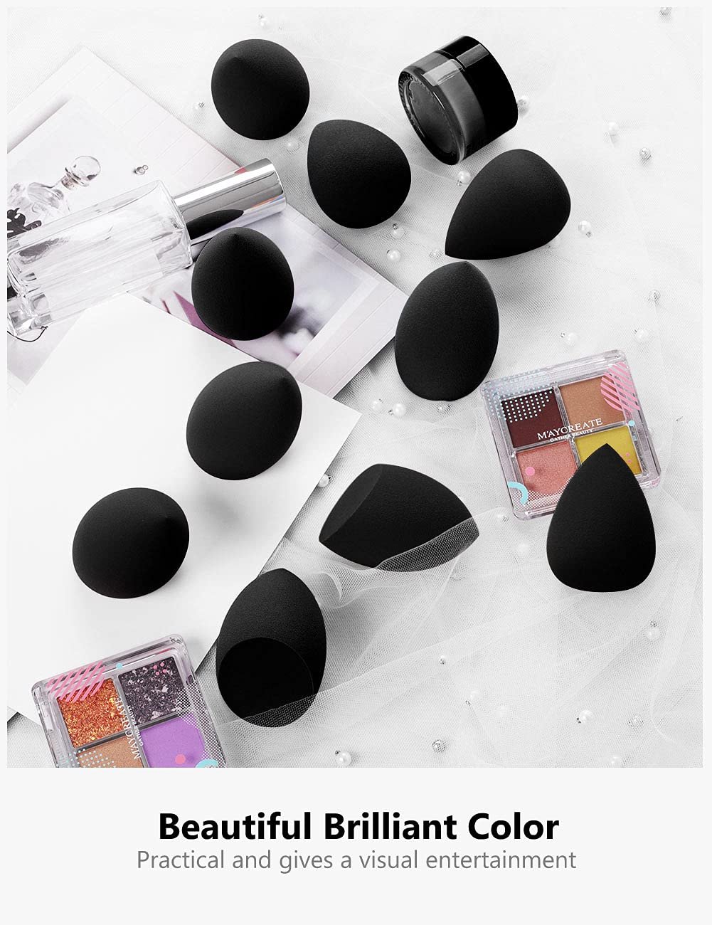 10 Pcs in 2 Shapes: Add a splash of color to your makeup bag with these black color makeup sponges. The large selection of 10 pcs makeup blending sponges includes two shapes that cater to your every need, whether blending your bronzer or applying your concealer.