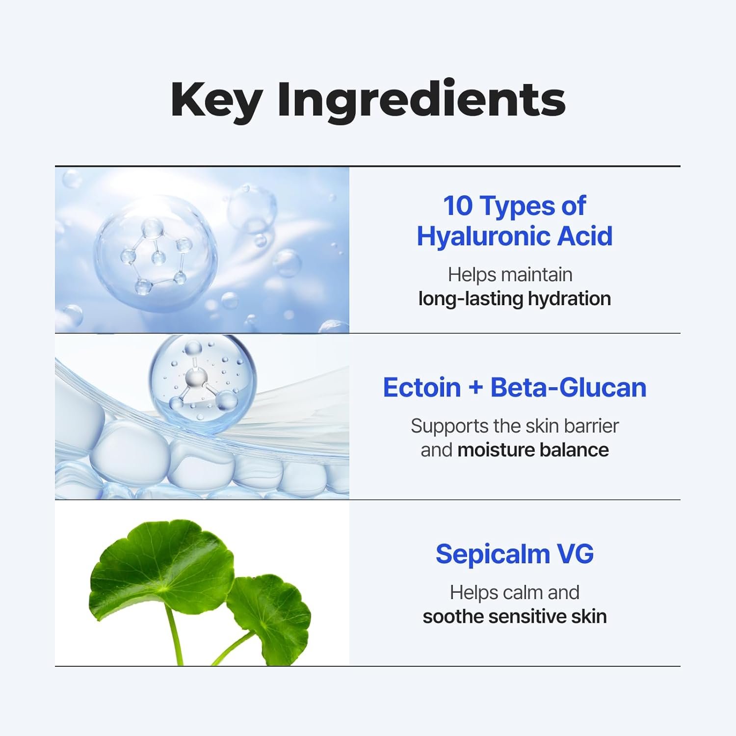 ☀️ Deep Hydration: Infused with 10 types of hyaluronic acid to help maintain skin moisture throughout the day.