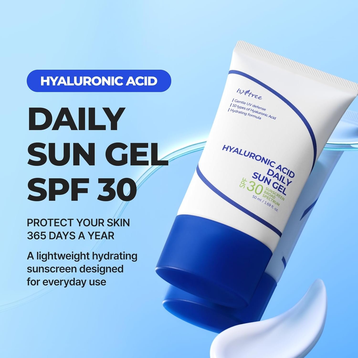 ISNTREE Hyaluronic Acid Daily Sun Gel 50ml, 1.69 fl oz | SPF 30 | Korean Skincare | Moisturizing | No White Cast | Lightweight | Mild Formula | Daily SPF | Korean Sunscreen