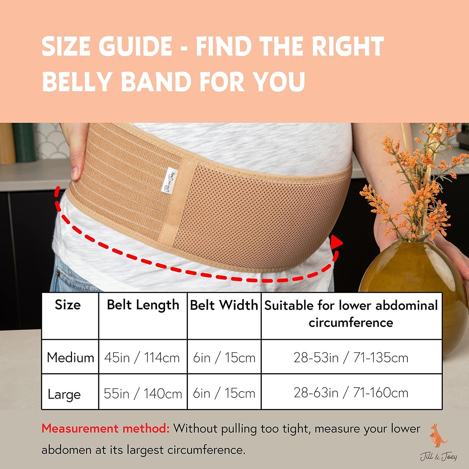 Jill & Joey Maternity Belt – Belly Band for Pregnant Women – Back Brace & Belly Support – Pregnancy Must-Have – Back Pain Relief (Beige, Medium)