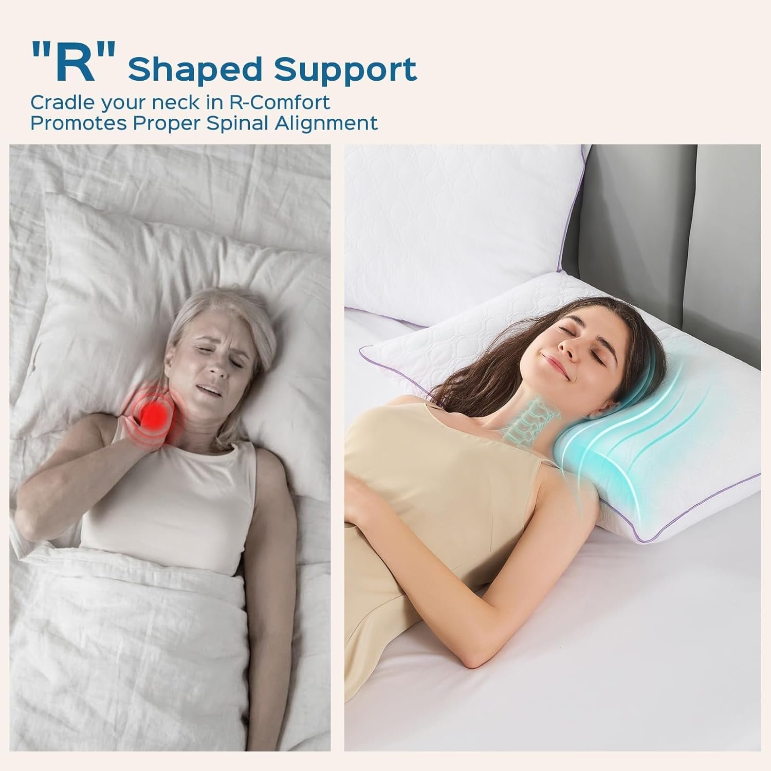 Pillows for All Sleepers: Filled with plump 3D and supportive down alternative fiber, these queen pillows offer the ideal “R” support that cradles your neck and shoulders, ideal for side, back, and stomach sleepers who crave balanced comfort