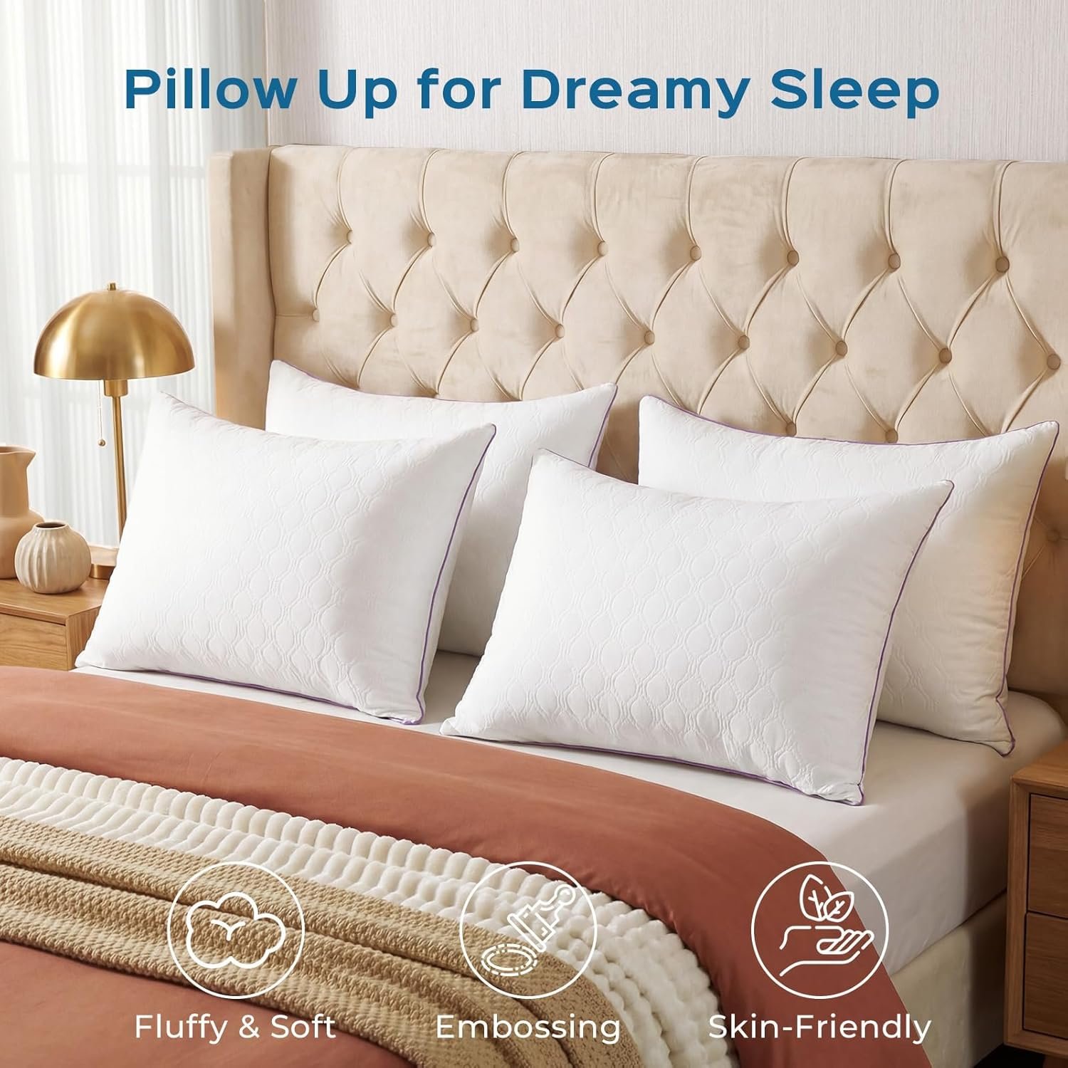 Cloud-Like Softness: Encased in a breathable 2.7 oz/yd² brushed microfiber, the cover of pillows queen size is exceptionally soft and skin-friendly, featuring dual-sided ultrasonic quilting to enhance breathability